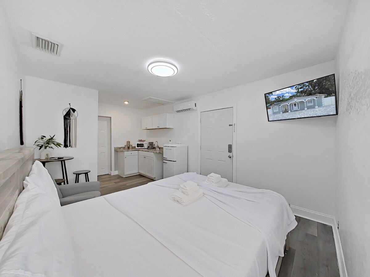 Dəbli Köhnə Seminole Hayts məhəlləsində kraliça çarpayısı, hamam otağı, qonaq/yemək/iş sahəsi, balaca mətbəx (Quru) və paylaşılan camaşırxanaları olan yeni yenidən qurulmuş dəbli və ayrıca studiya süitası. 83/100 piyada yolu ilə barları, restoranları, yeməkxanaları, çörək zavodlarını və qəribə mağazaları ziyarət etmək və ya 100+ yaşlı evin ağacdan salınmış küçələrində gəzmək asandır. Bu yer şəhərin mərkəzinə asan girişi olan Tampa tədqiqatçısı üçün mükəmməldir. Küçədə pulsuz parkinq, pulsuz Wi-Fi, pulsuz paylaşılan camaşırxana (qonşu məkanda).