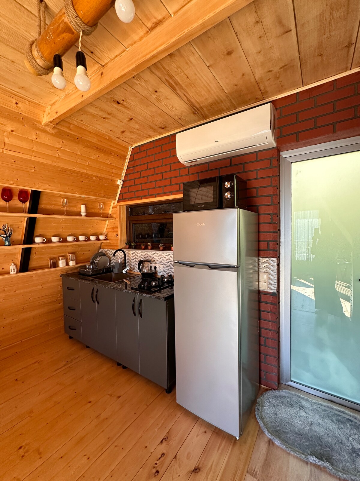Dinc kənddə 🏡 rahat üçbucaq formalı kottec – cütlüklər, tək səyahətçilər və ya təbiətsevərlər üçün idealdır. Loft yataq otağı, tam təchiz olunmuş mətbəxi və işıqlı qonaq məkanı olan rustik, lakin müasir interyerdən zövq alın. Ayrıca göyərtədə, od çuxurunda və ya qamakda dincəlin. Yaxınlıqdakı axın qonaqlamanıza suyun sakitləşdirici səsini əlavə edir. Təbiətlə əhatə olunmuş sakit tətil üçün mükəmməldir.