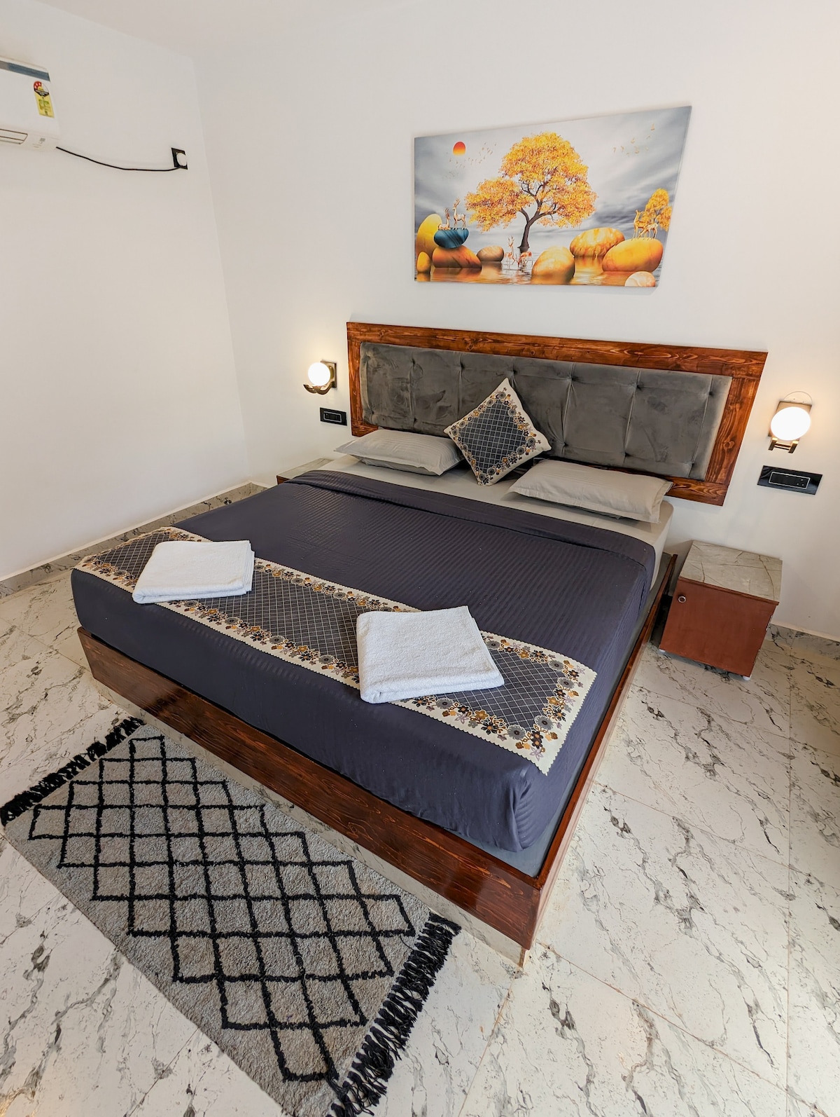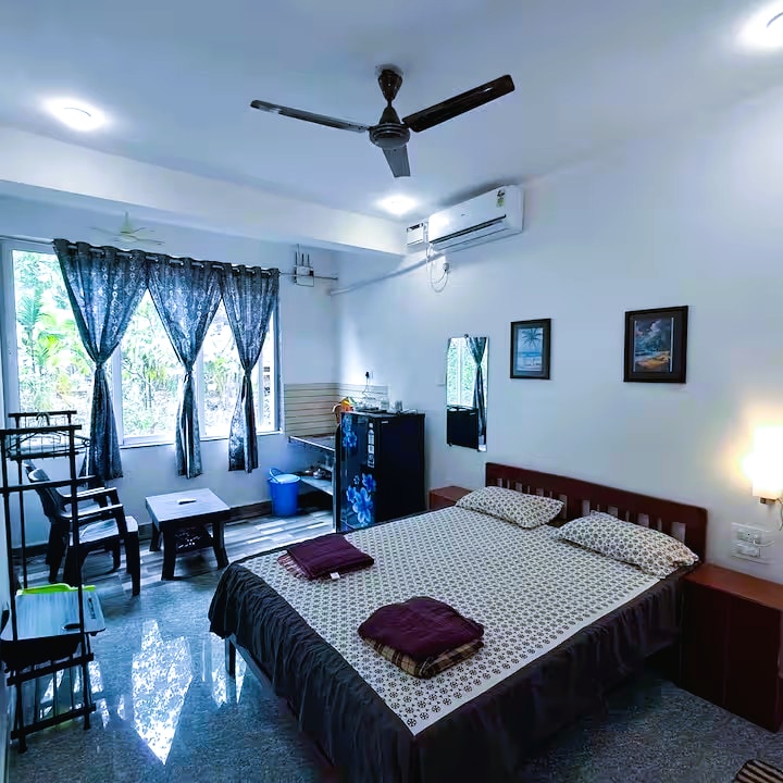 Şimali Qoa sahilində parlaq, müasir və dəbdəbəli mənzil, dincəlmək və ya işləmək üçün mükəmməldir. 🐚✨ • Mandrem çimərliyinə, kafelərə, bazara skuterlə 7 dəqiqəlik məsafədə • Avtomobil və ya skuter icarəyə götürmək üçün tələb olunur • Arambol, Aşvem, Morcimə skuterlə 10-15 dəqiqə • Şəxsi terras və iş sahəsi • Tam təchiz olunmuş mətbəx • Paltaryuyan maşın, ütü və fen • Tualet ləvazimatları təmin edilir • Qıfıllı qutu vasitəsilə öz-özünə giriş • Qəbul yoxdur; hər 3 gündən bir təmizlik • Parklanma və yerli ipucları, skuter və taksi əlaqələri