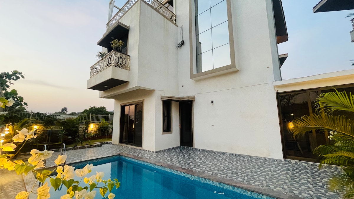Villa Euphoriaa*4-BR lux. Lonavalanın Tunqarli Təpələrinin sakit yaxınlığında yerləşən villa, Terrasda Open-Air Cakuzi (4 oturacaq), Pvt. Swimpool, Teatr (allOTT), Karaoke, Şənlik Otağı, Lift, TT, Oyunlar, Batut, Kitabxana! Terrasdan heyrətamiz Sübh və Nəfəs Alınan Gün batımı! Ulduzlu gecə qlempinqindən zövq alın! Böyük Gazebo - fab Sundowner! Villada yalnız Veg. food! Plalar tamamilə faydalı qida planı tələb edir. Əlil arabası yönümlü! Xüsusi günlərinizi dəstənizlə qeyd etmək üçün mükəmməl yer! 15 qonağı qəbul edin!