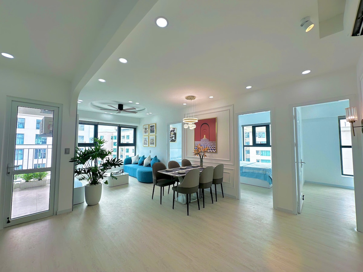 Sahəsi 150 kvadratmetrə qədər olan 3 yataq otaqlı böyük mənzil. Mənzil yüksək səviyyəli mebel ilə birlikdə müasir dizayn edilib. Bütün otaqda dəniz mənzərəsi var. Mənzil AVM, kinoteatr, KFC, Texas toyuğu, Starburck, .... Binanın düz yanında Lottle Mart var. Xüsusi: hava limanında pulsuz qarşılama və ya yola salma 4 nəfərlik, 7 nəfərlik avtomobil üçün tətbiq olunan 3 gecəlik rezervasiyalara tətbiq olunur. 16 oturacaqlı avtomobildirsə, əlavə 250 000 VND ödəniləcək