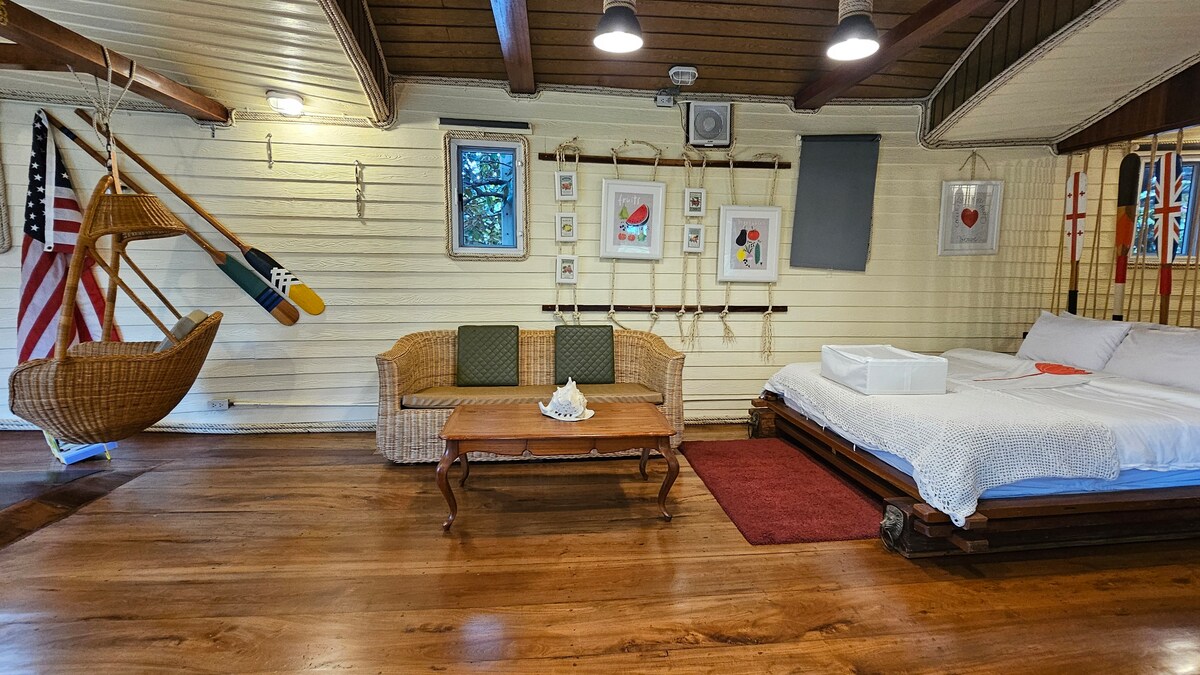 Bu sakit, dəbli məkanda dayanıb istirahət edin. Məkanımız Çaçonqsao Banqkokdan cəmi 1 saatlıq məsafədədir. Qayıq ev dinc yaşıl mühitdə yerləşən əsl "IAM JUN" qayığından inşa edilib. Çaya 1 dəqiqəyə gedə bilərsiniz.