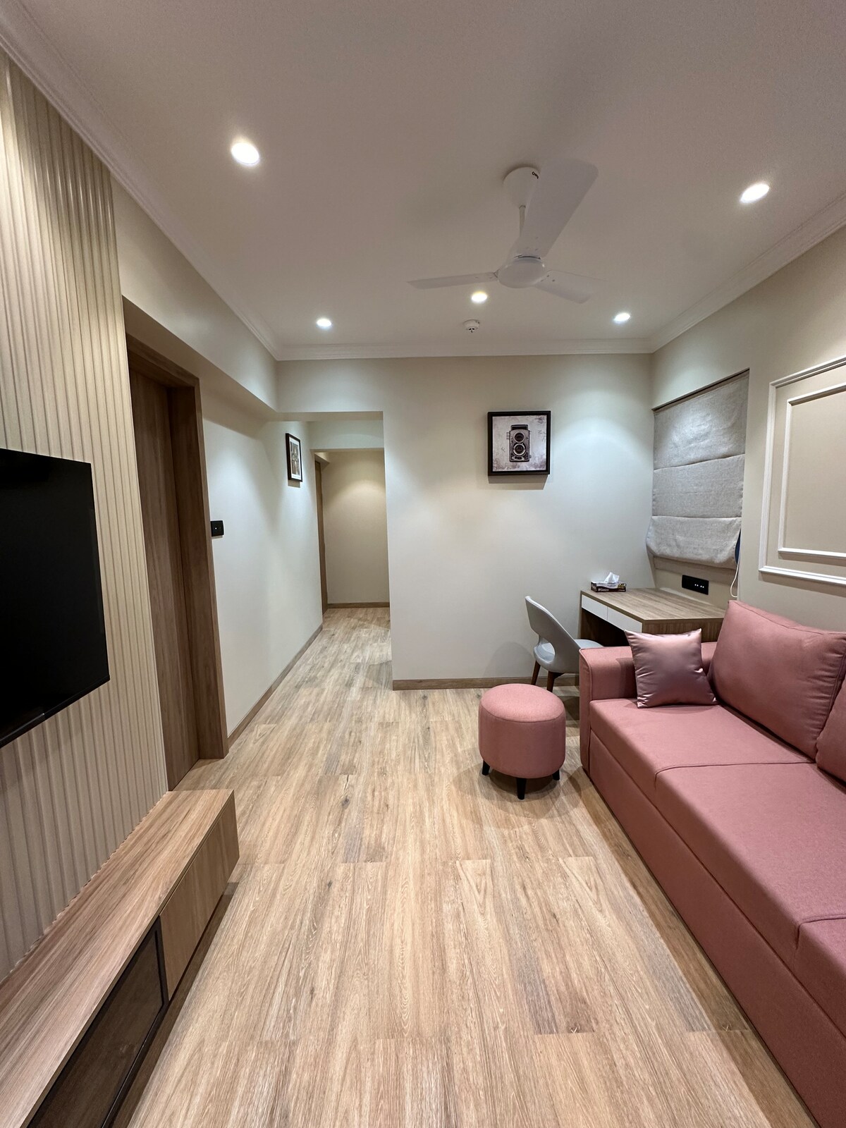 BKC-də biznes üçün şəhərdə? Və ya bəlkə ABŞ Baş Konsulluğuna yaxın bir yer axtarırsınız? Bu dəbli, müasir 2 otaqlı mənzil mükəmməl cavabdır. Mumbayın ən isti nöqtəsinə, hip və dəbli Bandra-dan sadəcə 8 dəqiqəlik məsafədə yerləşən bu müasir mənzil şən təcrübə üçün canlı rənglərlə lüks vəd edir. Daxili və beynəlxalq hava limanına 12 dəqiqə ABŞ Baş Konsulluğuna 5 dəqiqə Jio Dünya Mərkəzindən 5 dəqiqə uzaqlıqda NMACC-dən 5 dəqiqə
