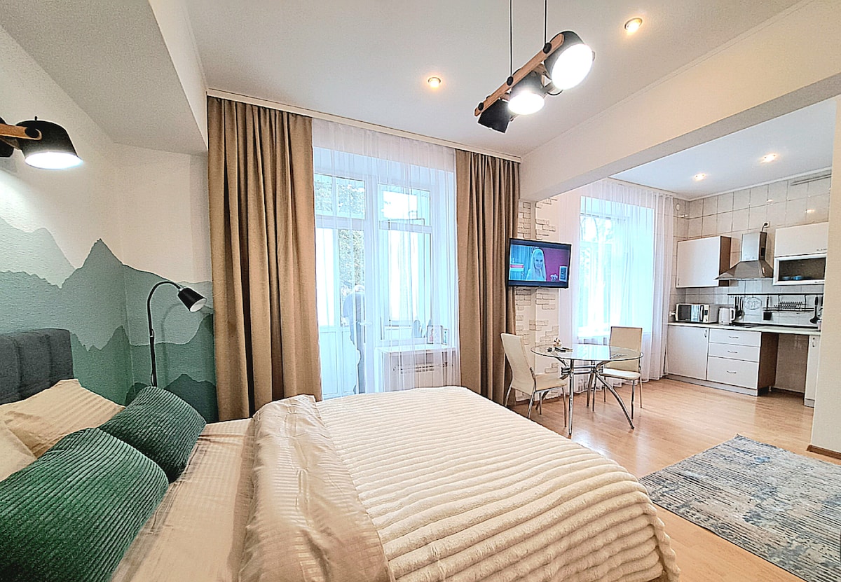 Сучасні апартаменти біля залізничного вокзалу Затишок у центрі Харкова Ідеальне місце для подорожуючих, гостей міста та відряджень. Простора студія обладнана всім необхідним для приємного перебування: ✔️ Зручне двоспальне ліжко-диван ✔️ Кухонна зона з усім для приготування їжі ✔️ Сучасна ванна кімната з гарячою водою ✔️ Пральна машина ✔️ Безкоштовний Wi-Fi та кондиціонер Поруч – метро, магазини, кафе, торгові центри та зручна транспортна розв’язка. Заселяйтесь та відчуйте себе як удома!