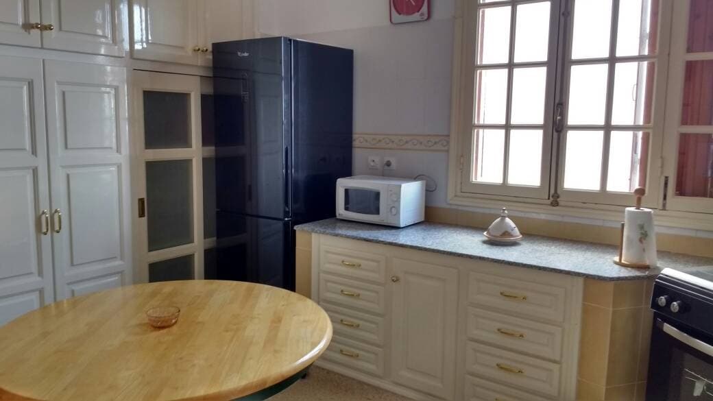 Location pour vacance d'un appartement neuf au premier étage de 90 m2 avec chambre à coucher, un grand salon ouvert sur la cuisine, disposant de tout l'équipement nécessaire, eau chaude et froide 24/24 h, salle de bain, cuisine équipé d'un réfrigérateur brandt 440 l, machine à laver brandt 10 kg, l'appartement peut accueillir un couple dans la chambre à coucher et trois personnes dans le salon marocain de 30 m2 avec téléviseur stream de 55 cm, parking gratuit.