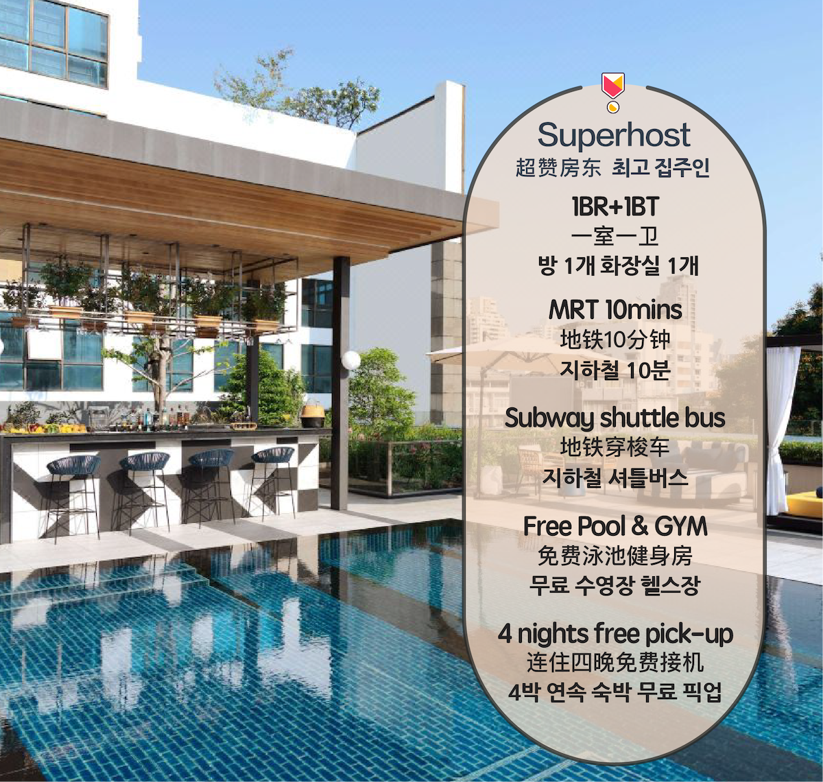 BTS 2 Min | Pool+Gym | 500 WiFi | Airbnb Fee On Us