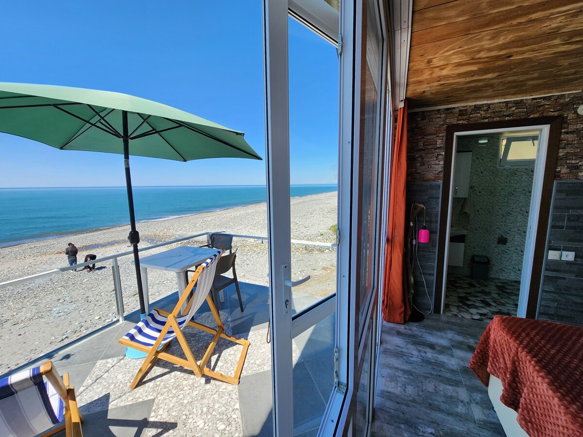 Kabinə birbaşa çimərlikdə yerləşir, terras və panoramik dəniz mənzərəsi var. Bu unikal məkan sizə canlı xatirələr bəxş edəcək.