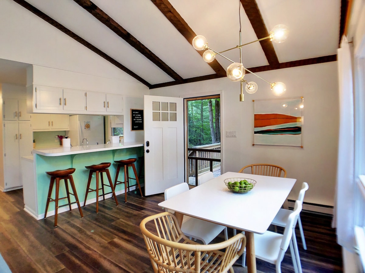Pokono dağlarında ideal şəkildə yerləşən heyrətamiz dağ evi. Həftəsonu gəzintisi və ya bütün il boyu daha uzunmüddətli qonaqlama üçün təyinat nöqtəniz! Çöldə gözəl 1 hektarlıq xüsusi meşəlik əmlakda təbii şəraitdən, cakuzidən, iki od çuxurundan, səhər qəhvəsi üçün təndirdən və ya ləzzətli barbekyudan zövq almaq olar. Evimiz sakit daxili atmosfer təklif edir və ev bütün Pokono Dağlarının mövsümi fəaliyyətlərinin yaxınlığında rahat şəkildə yerləşir. Rahatlamaq və ya enerji yığmaq istəməyinizdən asılı olmayaraq, evimiz mükəmməl istirahət təmin edir.