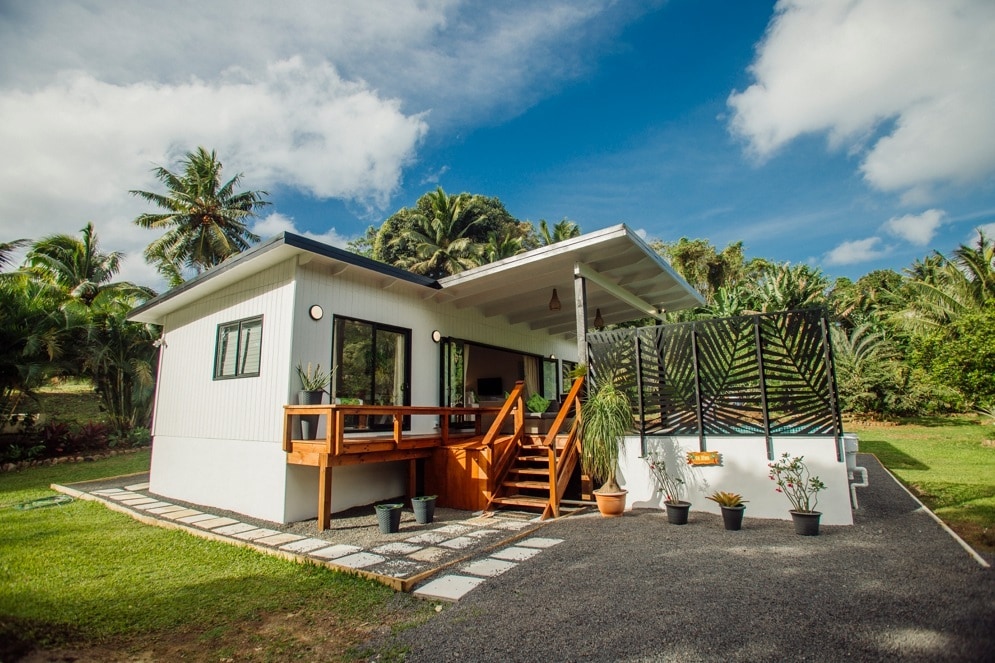 Our house is located on the north coast of Rarotonga in the village of Tupapa . It has modern furnishings including a spacious lounge suite, a dining table with ample room to seat six or you can open it out if you have guests for dinner and all the necessary appliances . It has 2 bedrooms with a queen bed in and the 3rd bedroom has 2 single beds. The master bedroom has a queen size bed and its own entrance to the shower and toilet. Each bedroom has its own set of drawer