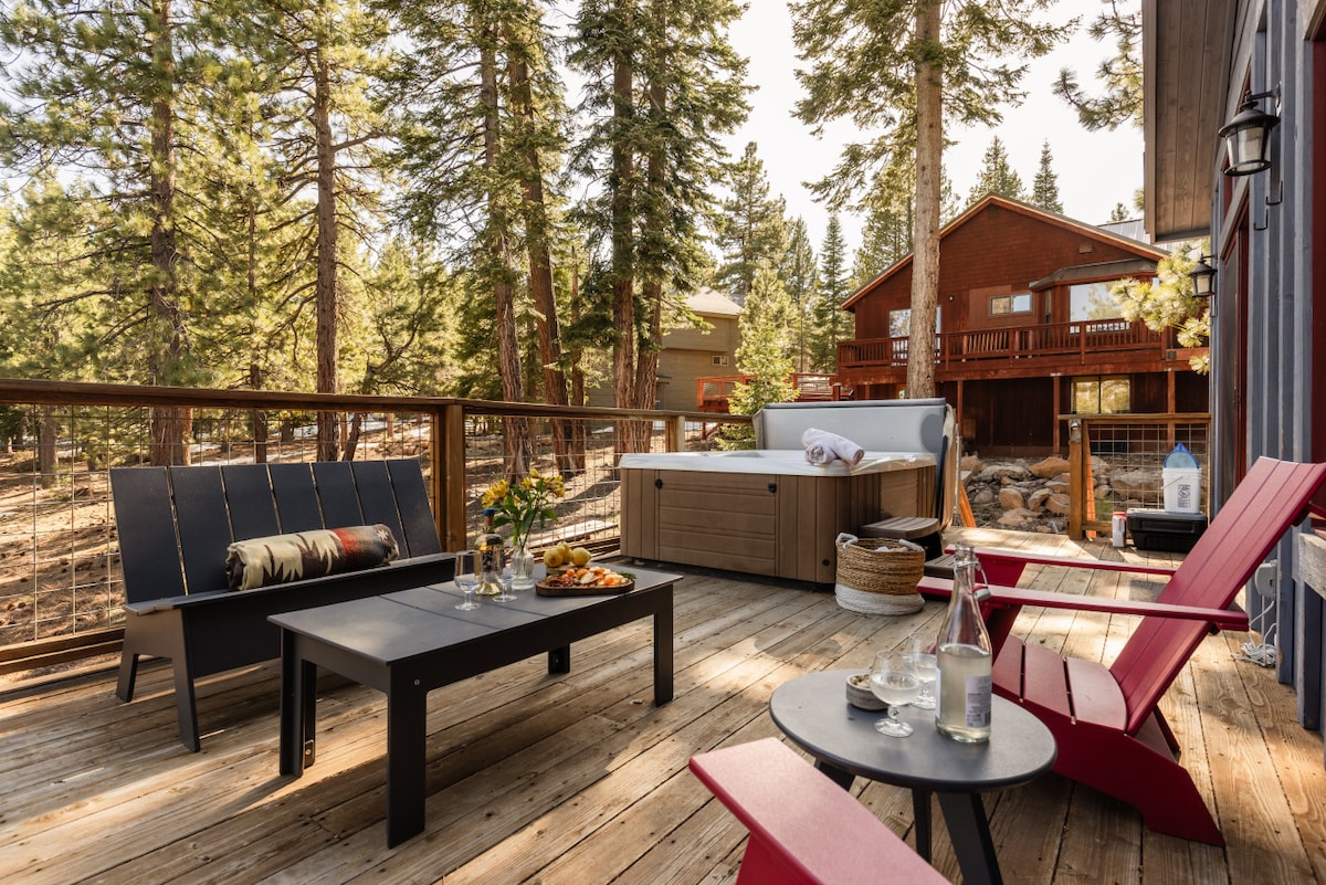 Privately set among the pines in Northstar Resort, The Tahoe A-Frame is a designer-renovated 4BR/2BA cabin with soaring ceilings and floor-to-ceiling windows overlooking the forest. Unwind by the fire, soak in the hot tub, or enjoy the arcade and massage chair after a day on the mountain. Just a 5-minute drive to the Village and located on the Northstar shuttle route for easy access to skiing, dining, and year-round adventure.