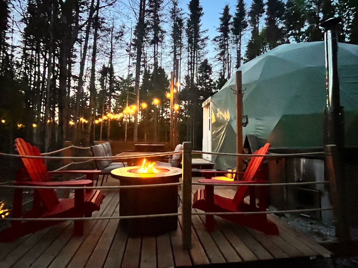 Rahat rahatlığın təbiətin sakitliyi ilə qarşılaşdığı ecazkar Meşə Leyn Günbəzinə qaçın. Bu unikal və gözəl dizayn edilmiş günbəz sizə müasir imkanların və sakit mühitin mükəmməl qarışığını təklif edən unudulmaz qlempinq təcrübəsi təmin edir. Seçilən cəhətlər: - Çarpayıdan böyük panoramik pəncərələrdən görünən mənzərələr. - Meşə ilə əhatə olunmuş rahat duzlu su cakuzisindən zövq alın. - Orqanik pambıq yataq dəstləri, botanika qoxusu və torpaqlama ayaqaltılar ilə səmimi rahatlıq.