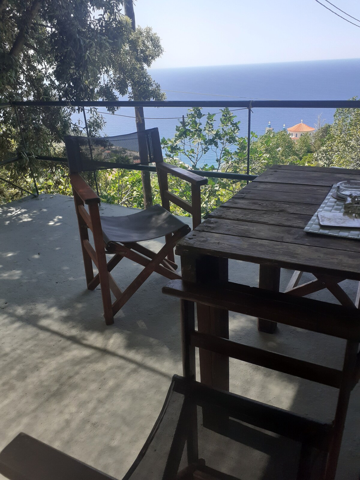 Das traditionelle Steinhaus grenzt an einer Seite an die natürliche Felswand. Das Bad ist ganz in den Fels hinein gebaut. Das ergibt ein ganz spektakuläres Wohngefühl und den Eindruck, mitten in der Natur zu sein. Die Terrasse hat eine wunderschöne Aussicht auf das Meer, den Strand von Fytema und die Berge von Messaria. Die Wohnung ist 2023 mit ökologischen Materialien im traditionellen Stil ausgebaut worden. Zum Strand sind es nur 200 m.