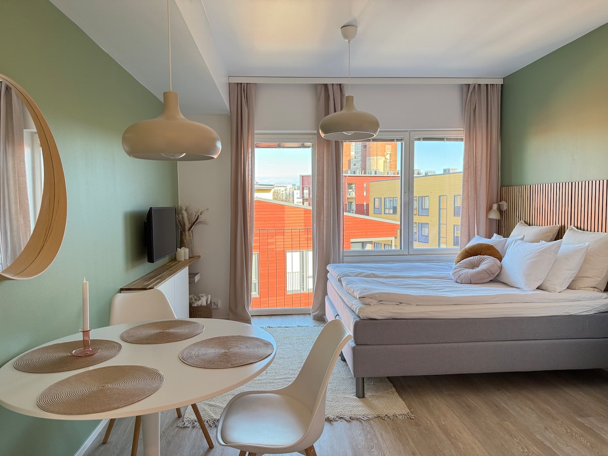 Turku Qəsri və limanın yaxınlığında gözəl bir mühitdə tam yeni studiya mənzili. Şəhər mərkəzi gözəl çay kənarından cəmi 20 dəqiqəlik məsafədədir. Mənzildə qısa ziyarət və ya daha uzunmüddətli qonaqlama üçün lazım olan hər şey, tam təchiz olunmuş mətbəx, hamam otağı, yeni daha böyük ikinəfərlik çarpayı və sevimli veranda var. Wi-fi girişi sizi səfərinizdə əlaqələndirəcək. Artıq qonaqlar yeni televizordan da istifadə edə bilər. Uusi yksiö lähellä Turun satamaa, kävelyetäisyydellä keskustaan.