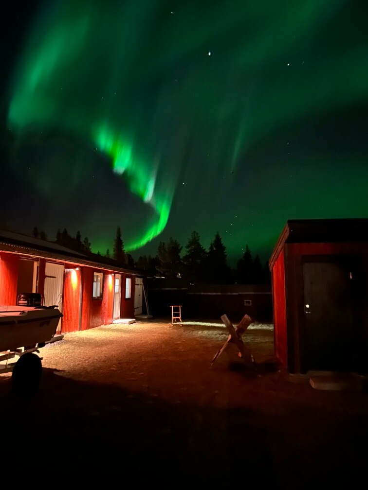 Laplandiyanın mərkəzində, fantastik balıqçılıq/buz balıqçılığı, çaylar, meşələr, qar maşını yolları, xizək mərkəzlərinin yaxınlığında, 1929-cu ildə tikilmiş bu gözəl evə asanlıqla çatmaq olar. Kiruna hava limanından bir saatlıq məsafədə. Evdən Aurora buruqlarını görə bilərsiniz. Sakit kənd mövqeyi. Öz qarlı cığırınız qapınızın ağzında başlayır. Cütlüklər, ailələr və ya dostunuzu gətirmək üçün uyğundur. İcarəyə götürmək üçün mövcud olanlar: qırağı ayaqqabıları, kayaklar, odunla qızdırılan sauna. Yerli bələdçi ilə xüsusi qar maşını turları. Qonaqlar üçün pulsuz elektrikli avtomobil şarjı.