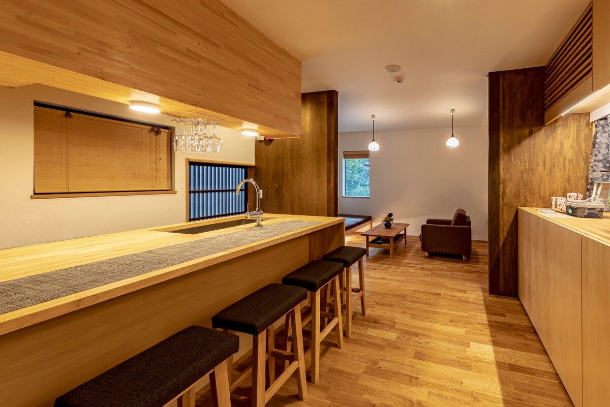 Kamo çayının yaxınlığında sadəliyi və xarakteri ilə seçilən, düşünülmüş şəkildə bərpa edilmiş Kyo-maçiya. Şəhər küçəsi boyunca yerləşən bu evdə orijinal tirlər və nazik divarlar qorunub saxlanılıb, buna görə də məhəllənin gündəlik səsləri təcrübənin bir hissəsi ola bilər. Yalnız pilləkənlə əlaqələndirilən bu 2 mərtəbəli evdə 152-179 sm çarpayı və 3-ə qədər futonla 5 nəfərə qədər qonaq yerləşə bilər. Ənənəvi xüsusiyyətlər tatami qonaq otağı, açıq üslublu vannası və kiçik bağ patio da daxil olmaqla müasir rahatlıqla birləşir.