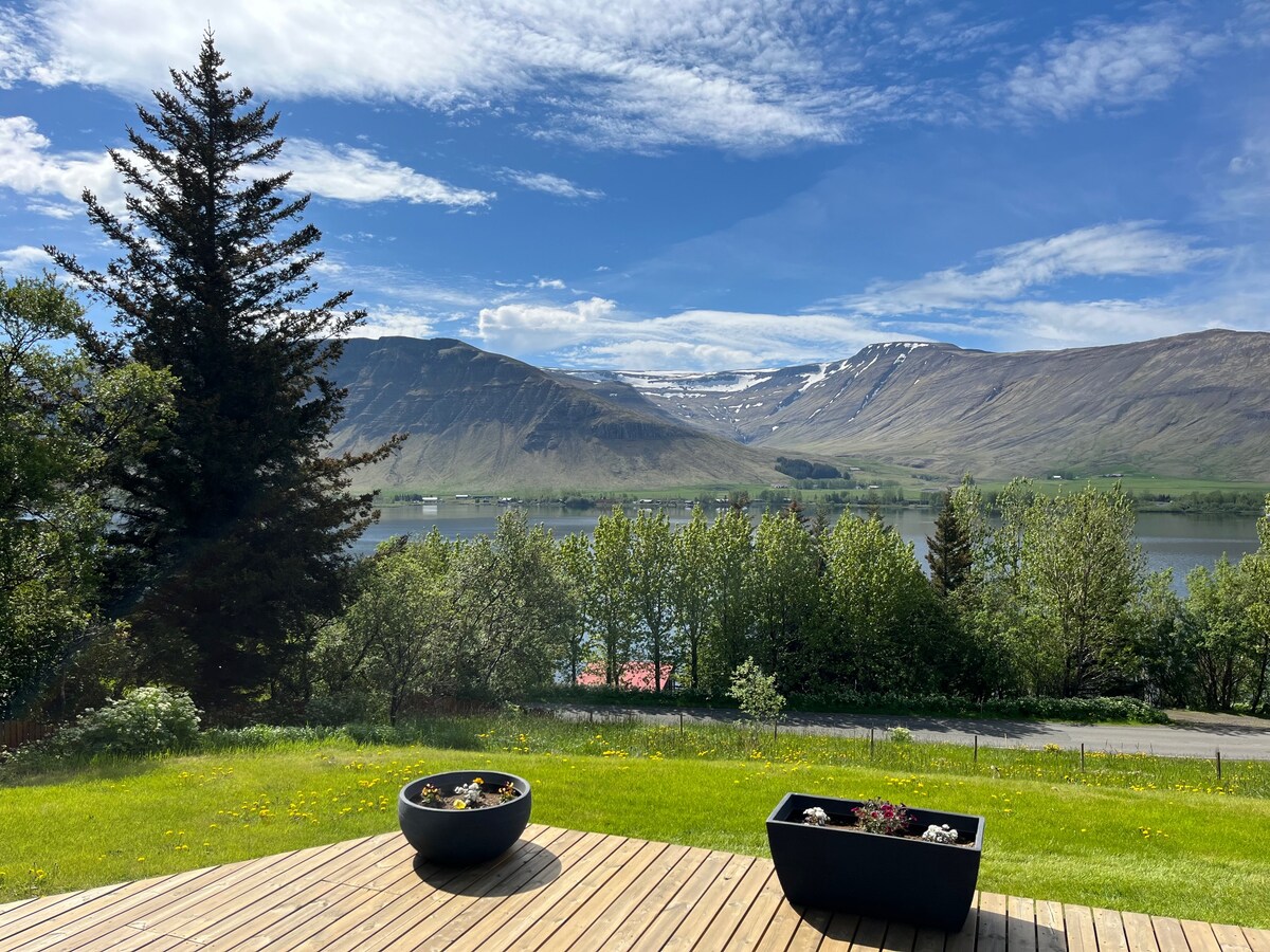 Sakit gölün və əzəmətli dağların panoramik mənzərələri ilə öyünən heyrətamiz gölkənarı kottecimizdə rahatlığı kəşf edin. Rustik, lakin müasir dizayna malik olan kottec iki gözəl yataq otağı və iki vanna otağı (biri genişdir) və geniş təbii işıq təklif edir. Nəfəs alan İslandiya günəşinin doğuşu və gözoxşayan təbiətə uymaqdan zövq alın. Reykyavikdən cəmi 40 dəq, Qızıl Dairədən isə 25 dəq. məsafədə sülh axtaran səyahətçilər üçün ideal yerdir. Qeydiyyat nömrəsi: HG-18303