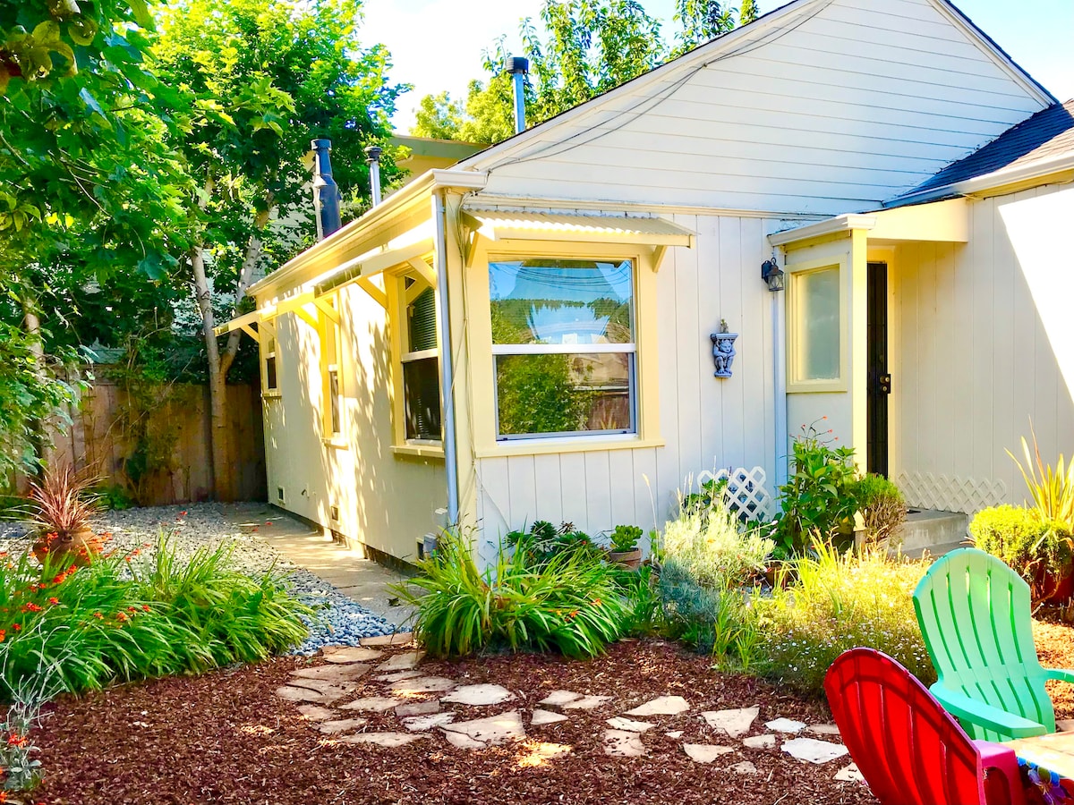 This detached 420 sf apartment is perfect for 1 or 2 guests. Light-filled studio (from two solar tubes) on over 1/3 acre of flowers and fruit trees, three blocks from downtown, and craft foods and wine. Very close and easy access from the highway. Jacksonville is 6 miles, and the Ashland Plaza is 17 miles. Southern OR is filled with playhouses, delicious wine, yummy local restaurants, scenic rivers, and endless wilderness. Come enjoy! We celebrate diversity!