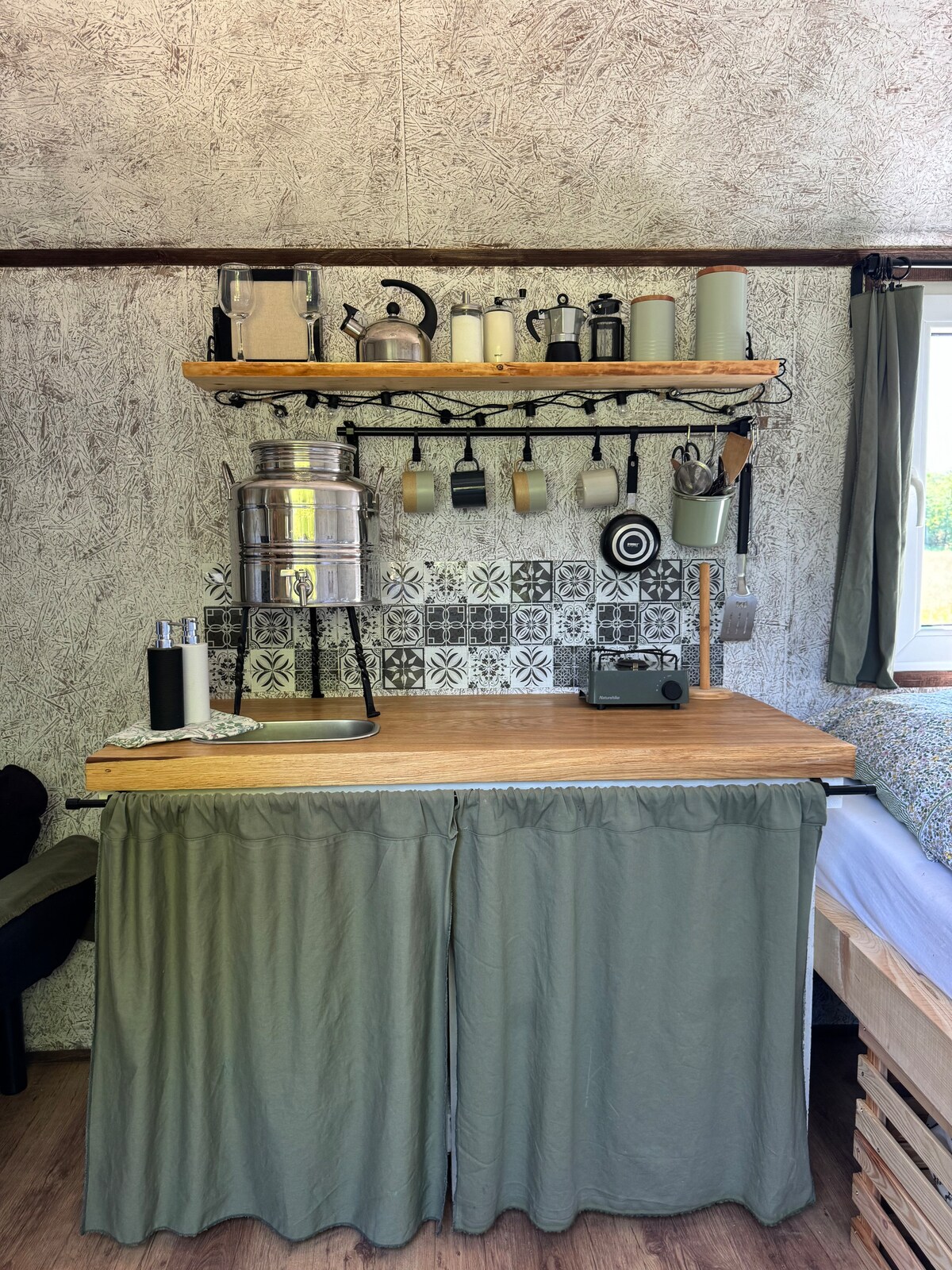 Şəhərin səs-küyünün quşların mahnı oxuması ilə əvəz olunduğu kənd mənzərəsinin ortasında həyatın rahatlığını, sadəliyini və istirahətini yaşamağınız üçün bir yer yaratdım. Təchiz olunmuş mətbəx, rahat çarpayı və təbiətin olması bir müddət səs-küydən qurtulmağınıza imkan verir. Bu məkan təbiətə qayıtmaq istəyənlər və ətraf mühitlə harmoniyada rahatlıqdan zövq almaq istəyənlər üçün mükəmməldir. Bizə gəlin və enerjini təbiətin rahatlığı və gözəlliklərindən əldə edin. İtlərə icazə verilir.
