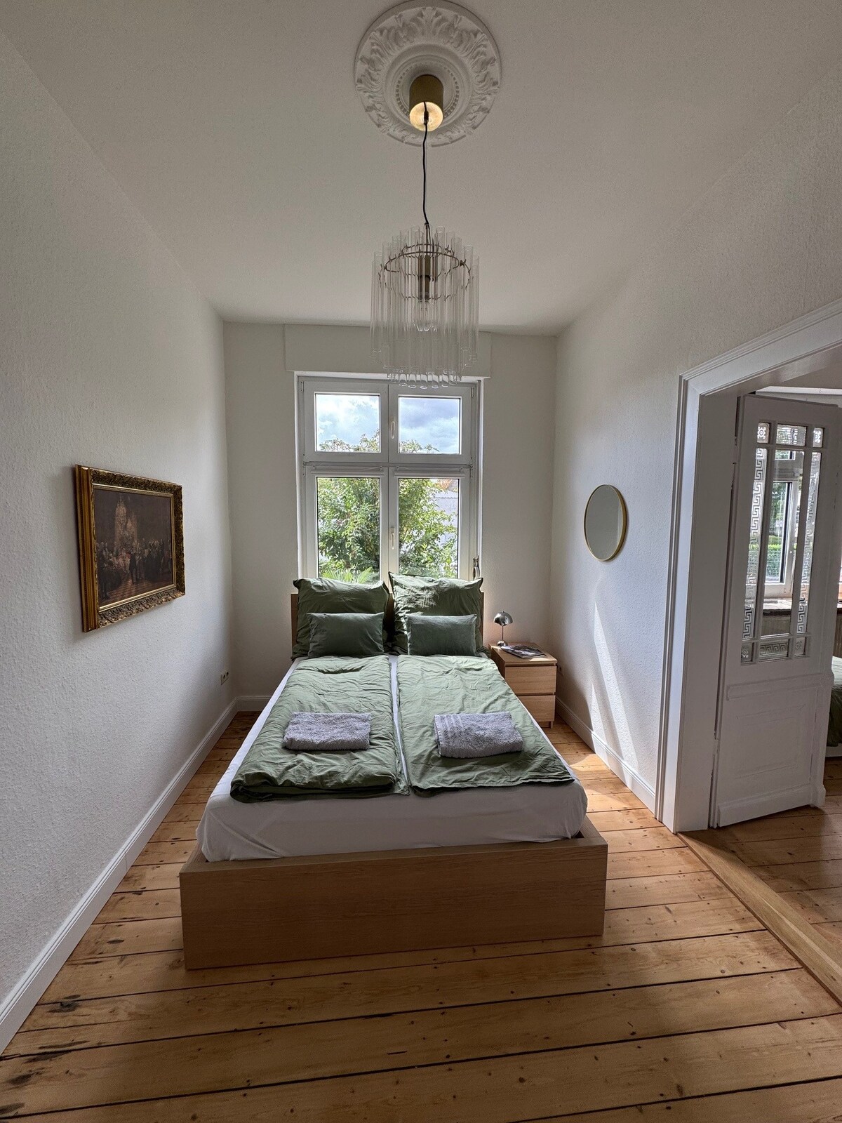 Welcome to `Maison Cassis´, a bright and quiet holiday apartment in a charming period building in Ludwigshafen-Oggersheim. The nearby Maudacher Bruch nature reserve invites relaxing walks in green surroundings. Mannheim, Heidelberg and the Palatinate Forest are easily accessible. The apartment accommodates up to two guests and features a private entrance and garden area. A bakery, supermarket and tram stop are just 150 metres away. Lakes, an outdoor pool and restaurants are close by.
