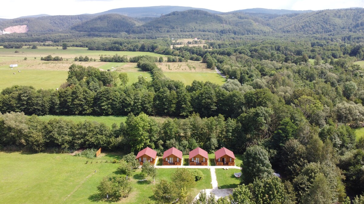 Tam təchiz edilmiş taxta jurnallardan hazırlanmış geniş kotteclər. Qaz və barbekü olan gözəl bir bağda yerləşir. Balacalar oyun meydançaları, sürüşkənlər, yelləncəklər, tramplinlər və qum qutularının əyləncəsindən çıxdıqda böyüklər füsunkar dağların heyrətamiz mənzərələri olan qamakda dincələ bilər. Kottec sakit bir ərazidə - Wambierzyce mərkəzindən 2 km məsafədə, Həcc mənzərəsinin ətəyində yerləşir. İl boyu ailəvi tətil üçün mükəmməldir.