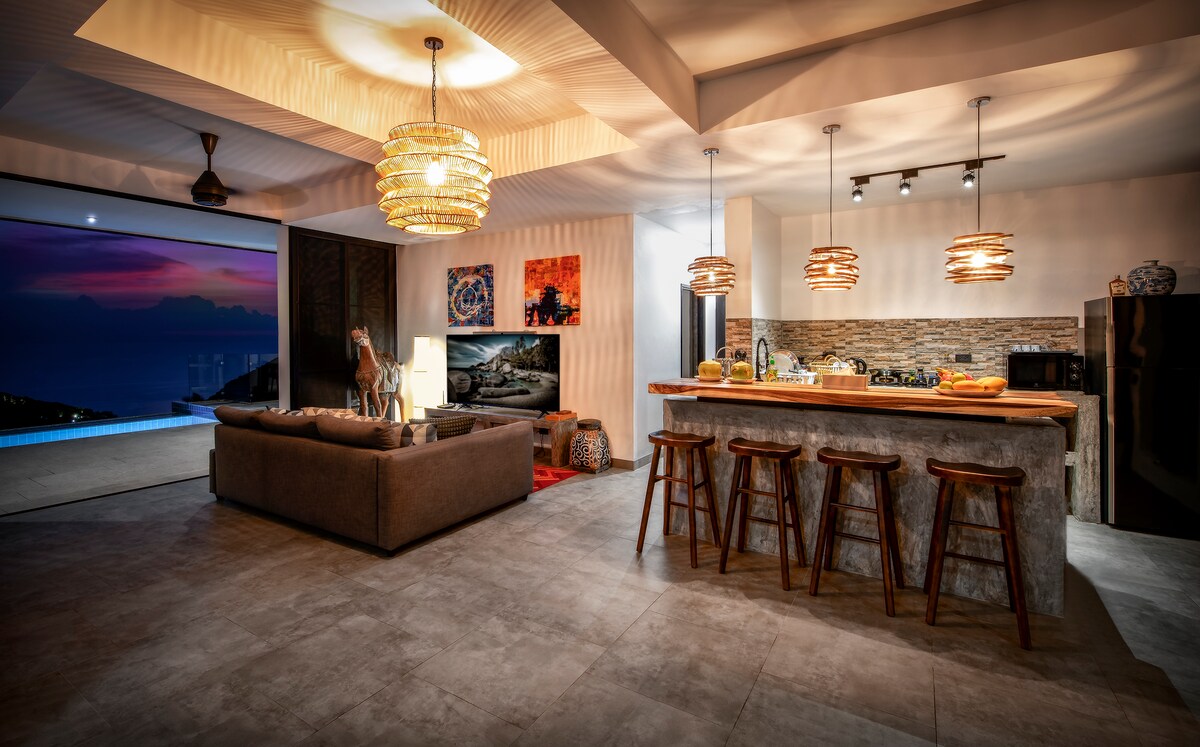 Unwind in our beautifully designed one bedroom modern apartment, a peaceful haven within our tranquil and spacious resort. Located in a central yet quiet part of the island, you are a few minutes drive from picturesque sunset beaches, co-working spaces, high-end restaurants, yoga centers, and other attractions. This stylish apartment offers a comfortable and contemporary escape for couples, modern kitchen, outdoor garden, smart tv. Create lasting memories in this serene setting.