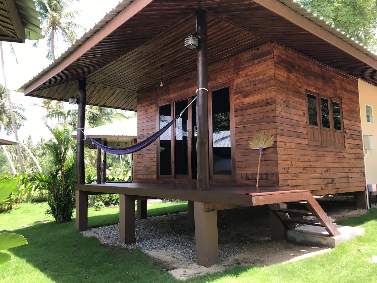 Hin Kong Beach, Koh Phangan-da rahat çimərlikdəki evcik studiyamızda ada həyatının mahiyyətini yaşayın. 100% pambıq yataq dəsti olan rahat king-size ölçülü çarpayı, otaqda isti/soyuq duş, kondisioner, minibar, qarderob, ayrıca terras və çimərliyə birbaşa çıxışı olan ön həyətiniz olacaq. İsti su çaydanı, eləcə də şampun, hamam sabunu, saç kremi və təmiz dəsmallar kimi tualet ləvazimatları təmin edilir. Tropik həyatın sadəliyini qəbul edin və narahatlıqlarınızı özəl, rahat yuvamızda unudun!
