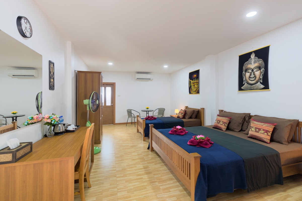 Double Air Con Room 36sqm,spacious room in quiet area just 1 minute from Pattaya beach,private bathroom,hot shower,wifi,fridge,kettle,coffee,water,safe box,terrace,hairdryer.Daily cleaning.
