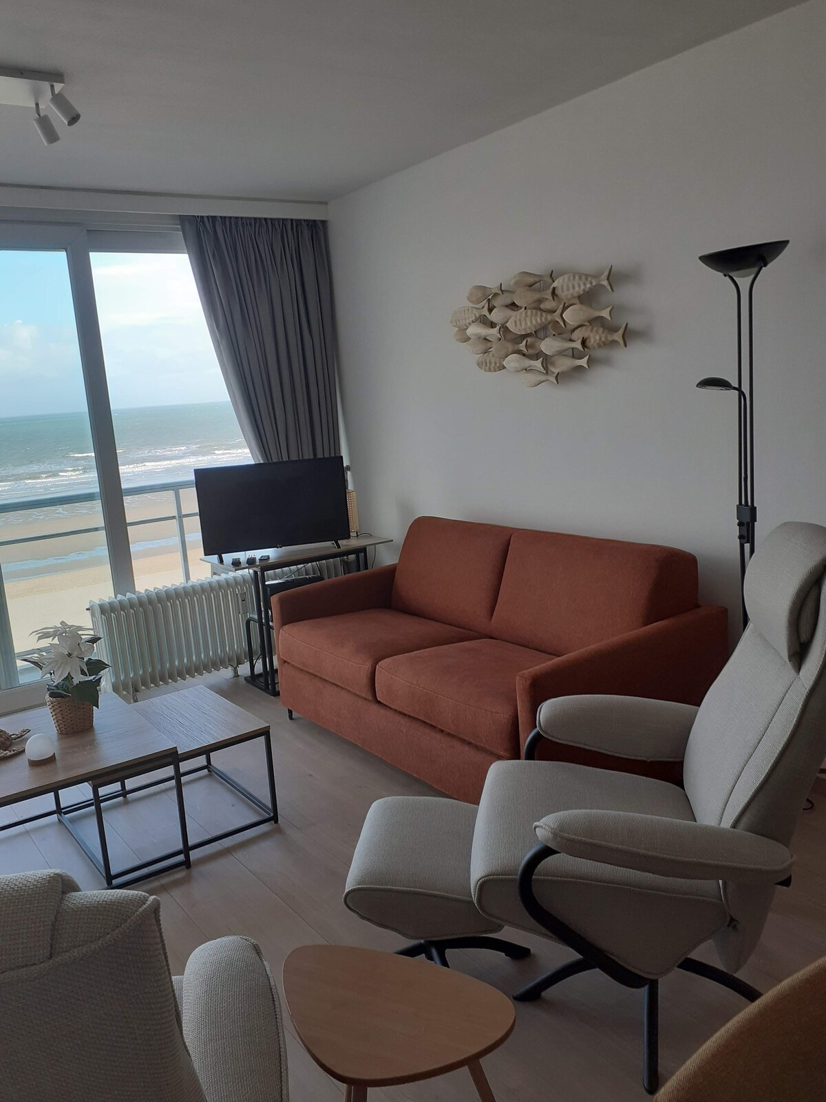 Dəniz boyasındakı bu füsunkar mənzildə unikal tətildən zövq alın! 5-ci mərtəbədə yerləşən bu mənzil ön tərəfdə panoramik dəniz mənzərəsi, arxa tərəfdə isə hinterlandın gözəl mənzərəsini təqdim edir. Təbiət qoruğuna baxan yataq otağının dəniz mənzərəsi və terrası olan qonaq otağının terrası. Pulsuz Wi-Fi. Binada fitnes, polivalent otaq, qızdırılan üzgüçülük hovuzu və sauna (pulsuz). Geniş lift. Gəzinti məsafəsində ictimai nəqliyyat. Yataq və hamam dəsti daxildir.