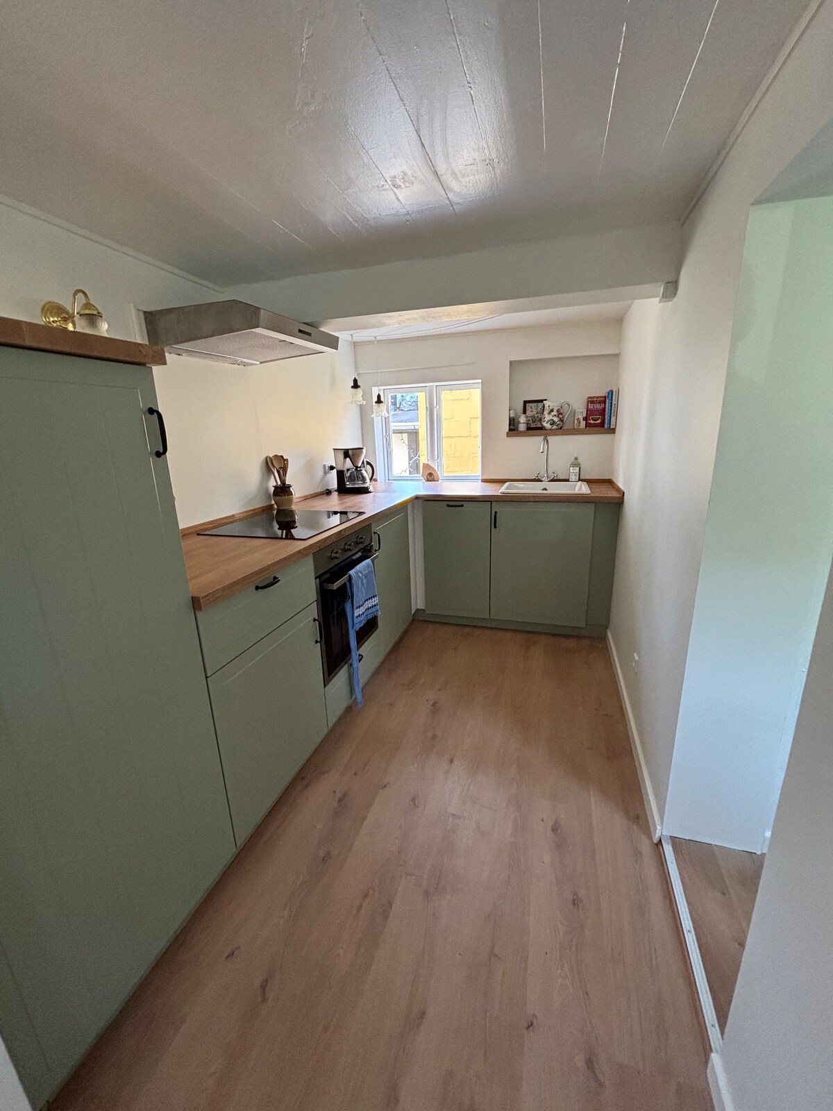 Əlavə binamızda mətbəx küncü olan yataq otağı və duşu olan hamam var. İki nəfərlik çarpayı, yemək sahəsi və soyuducu, elektrik çaydanı, toster və kombi sobası olan mətbəx var. (Pliitə yoxdur) Pulsuz qəhvə/çay təmin edilir. Açıq havada mebel və qaz qril ilə özəl kafel terasın çıxışında veranda qapısı var. Parklanma yerində avtomobil/velosiped saxlamaq mümkündür. SuperBrugsen 100 metr və xalis 400 metrdir. Buradan təxminən 50 metr məsafədə kinoteatr və yaxınlıqda bir neçə fərqli yeməkxana var. Əlavə bina yaşıl sahəyə qədər uzanır.
