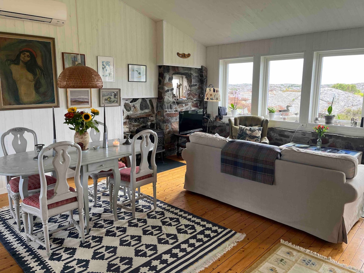 Skärhamn yaxınlığında 1886-cı ildə tikilmiş füsunkar bir fermada parlaq və təzə yaşayış. Üç istiqamətdə böyük pəncərələri olan və tavanın hündürlüyü 3 metr olan mənzil. Yeni təmir edilmiş, köhnə cazibədarlığı olan, lakin saytda müasir xüsusiyyətlər - tam təchiz olunmuş mətbəx, paltaryuyan maşın, duş, wc və washbasin ilə gigiyena məkanı - kafel və döşəmə isitmə sistemi. İki nəfərlik çarpayısı olan havalı və sakit yataq otağı. Veranda və bağa giriş. Düyün xaricində gözəl təbiət və yürüyüş cığırı. Dənizə 700 m məsafədə iki velosiped