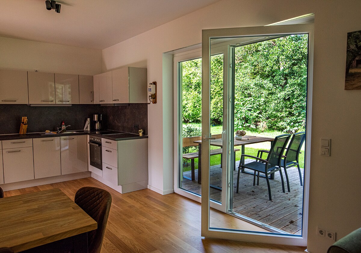 Mənzildə balaca mətbəxli qonaq otağı, yataq otağı, duş/tualet olan vanna otağı var. Burada stullar, masa və barbekü olan terras da var. Velosipedlər üçün kilidlənə bilən töküntü sizin ixtiyarınızdadır. Dərhal yaxınlıqda bir çox ticarət müəssisələri, mehmanxanalar, limanlar, Spreewald Terme və reabilitasiya mərkəzi var. MÜHÜM Spa haqqı 18 yaşdan başlayaraq adambaşına gecəlik 2 avro təşkil edir. Bu, saytda nağd qaydada ödənilməlidir.