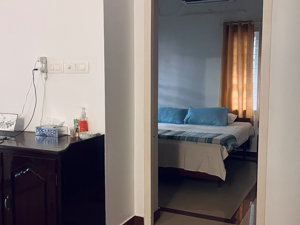 * This is a strictly quiet residential home for rest. ** Alcohol is not permitted inside the apartment. A clean, calm 2-bedroom apartment for couples and families seeking a peaceful stay near the beach. Each bedroom has AC and a private bathroom with hot water. The apartment includes a washing machine, TV, fast WiFi, and a compact kitchen with fridge, induction stove, and kettle. Power backup is available. The beach is a 10-minute walk away, in a quiet residential area away from noise.