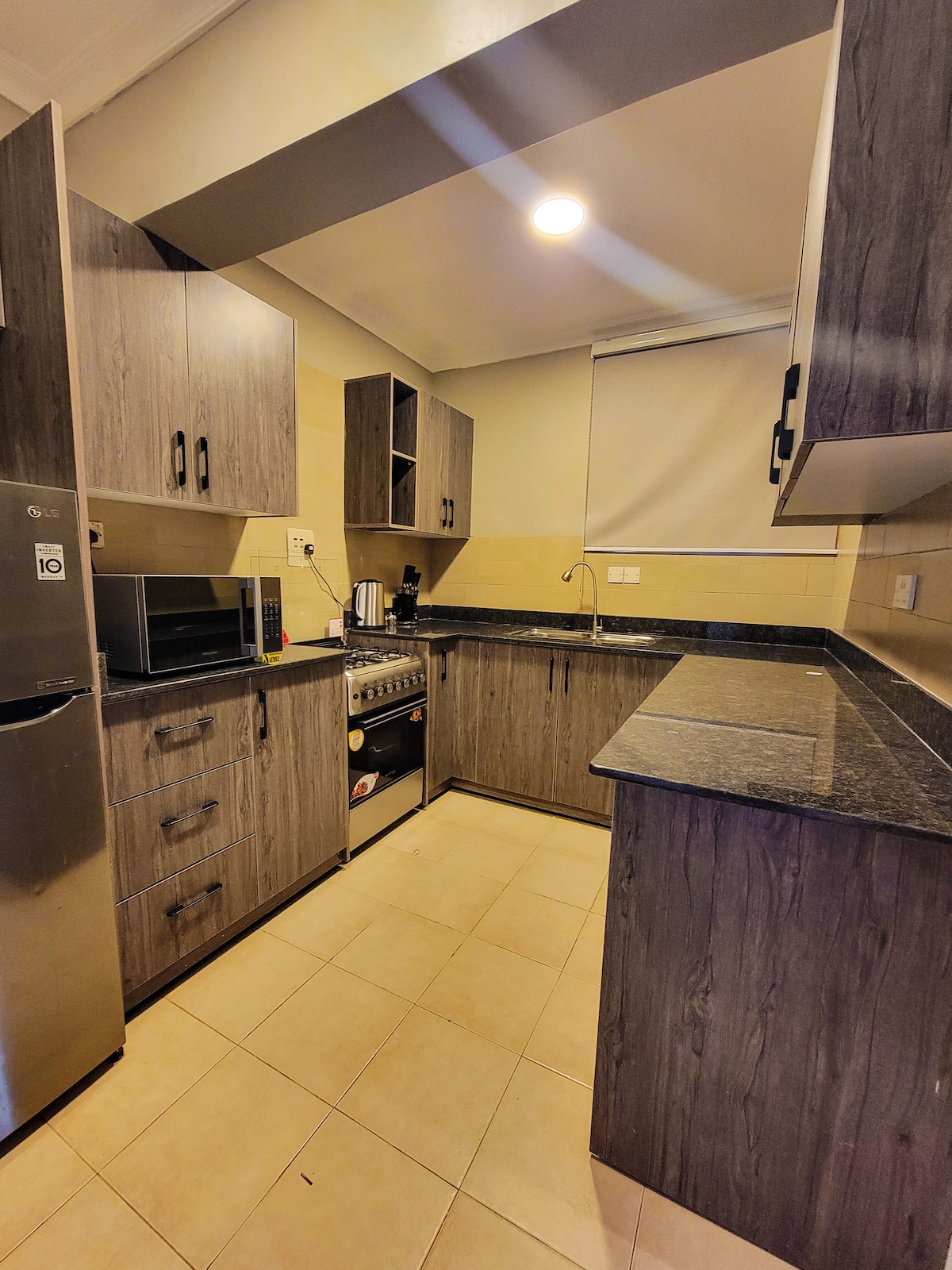 Bu Estetik Bir Yataq Otağı Mənzili Keyfiyyət Supermarketinin yaxınlığındakı Naalya Malikanəsində yerləşir. Ekspress şossesi vasitəsilə Hava Limanına aparan şimal keçidinə bir neçə dəqiqəlik məsafədədir və Acacia Mall-a, yaxınlıqdakı gözəl restoran və barlara yaxındır. Şəhər mərkəzinə bir sıra alternativ yollar da var. İmkanlar bunlardır: - Bütün mətbəx avadanlıqları məs. Düyü bişirən, Qəhvə maşını, Blender - Sürətli WI-FI - 55 düymlük Samsung ağıllı tv - Samsung səs çubuğu - Paltaryuyan maşın