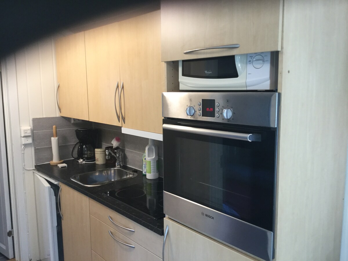 Kolvereid mərkəzində, mağazalara, idman mərkəzinə və idman zalına yaxın, təxminən 36 m2 sahəsi olan mənzil. Terasdan istifadə edə bilərsiniz, qismən ev sahibi ilə paylaşılır. Avtomobil dayanacağında park etmək. Elektrik avtomobil şarj cihazı. Velosipedlərin təhlükəsiz saxlanılması üçün anbar.