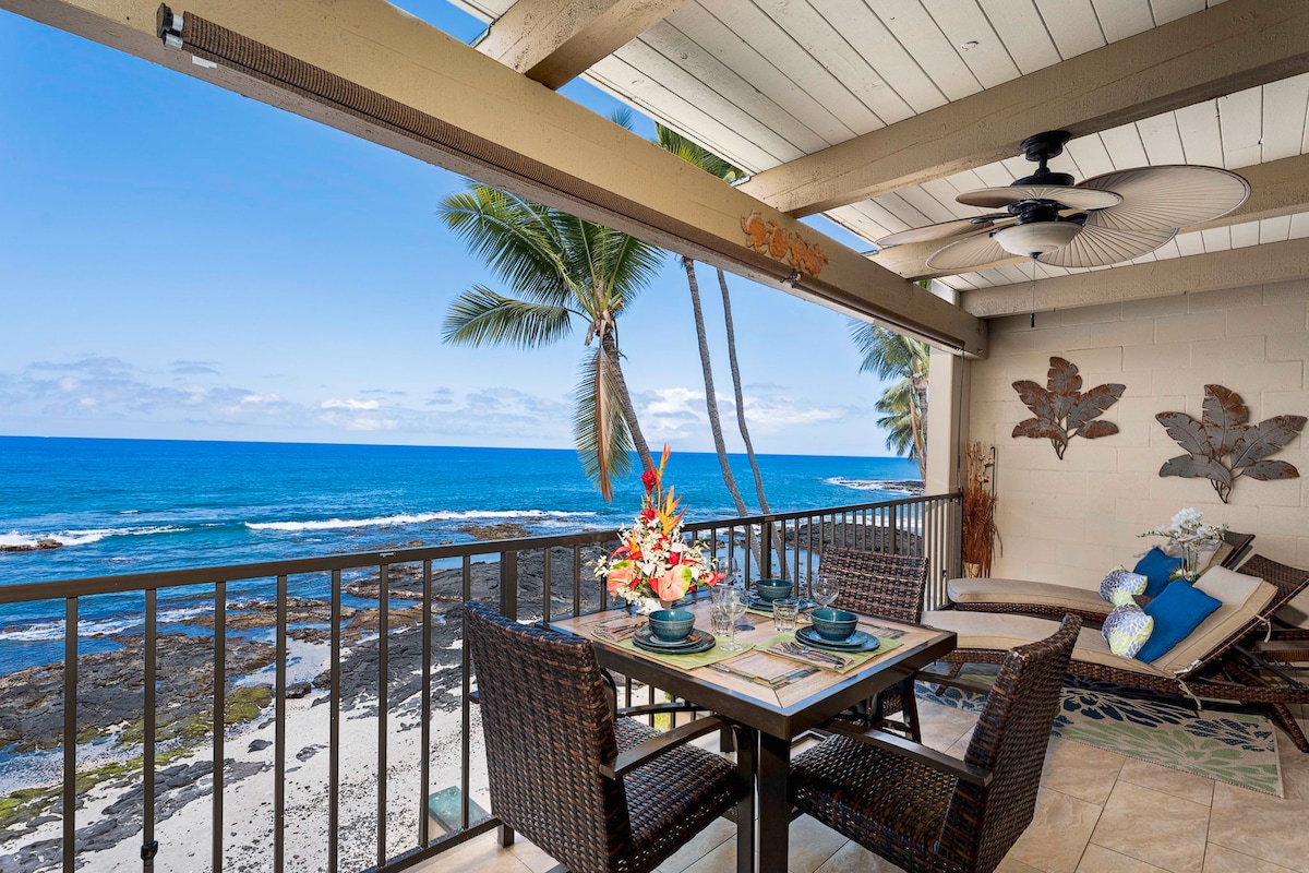 Sakit okeanın gözəlliyinin sürüşən şüşə qapınızın bir addımlığında olduğu Kona Rifdə Havay gəzintinizə daxil olun. Birinci mərtəbədə yerləşən bu qurğu asan giriş (parkinq sahəsindən cəmi beş addım aşağı) və okeana heyrətamiz yaxınlıq təklif edir. Ayrıca lanayınızdan möhtəşəm qürublardan zövq alın, çünki səma günün mükəmməl sonu olan maron, portağal, sarı və qırmızı rənglərdən ibarət kətana çevrilir. Səhər qəhvəsinə və ya tropik gün batımı içkisinə qənaət etməyinizdən asılı olmayaraq, bu yer xəyalların gerçəkləşməsidir.