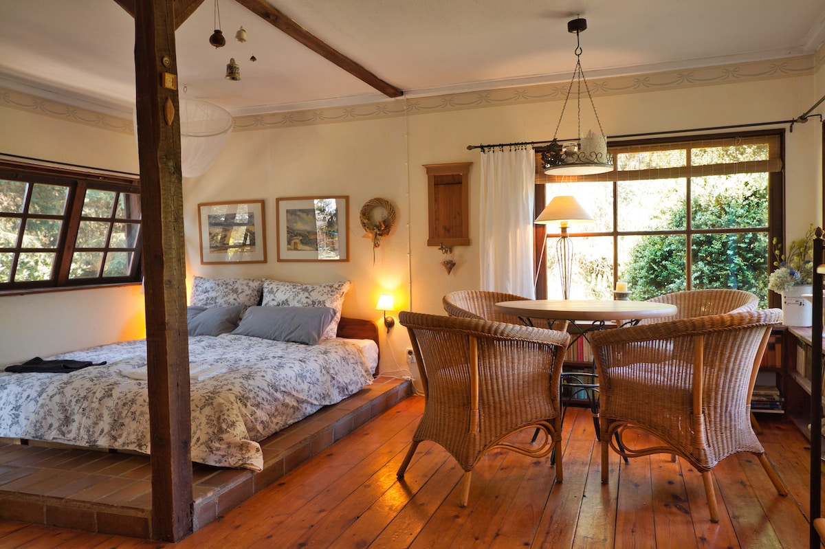 Bu, böyük deyil, lakin xülyasız olmaq üçün bütün komfortlar var. Kottec dizayner evciyi deyil, füsunkar və köhnədir. Berlinin mərkəzi və Potsdamla tez əlaqə saxlamaq olar. Ətrafda ayrıca giriş, su mənzərəli balkon, terras və bağ. Əlavə ödəniş qarşılığında divan çarpayıda mətbəx, vanna, yataq otağı və əlavə yataq yeri olan qonaq otağı. Biz qapının yanında yaşayırıq, buna görə də heç vaxt giriş və ya açar problemi olmayın. Divar cığırındayıq. Ev heyvanları da qəbul edilə bilər.