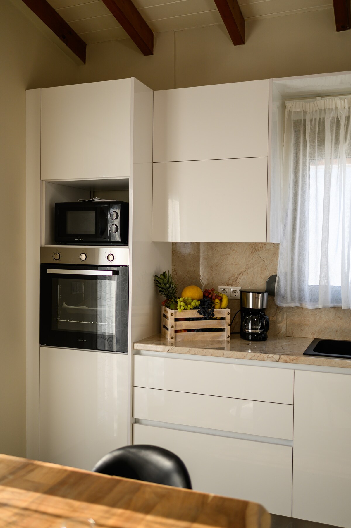 This is a traditional Greek house built on the hill. The house has a high wooden roof and a super kitchen. Floor heating. Spacious terrace with an unbeatable mountain view. Natural tranquility. 15 minutes from the airport, easy to rent cars, 8 minutes from the beach, 8 minutes from the supermarket. 21 olive trees, more than one is over 100 years old. The owner is good at cooking Asian food.