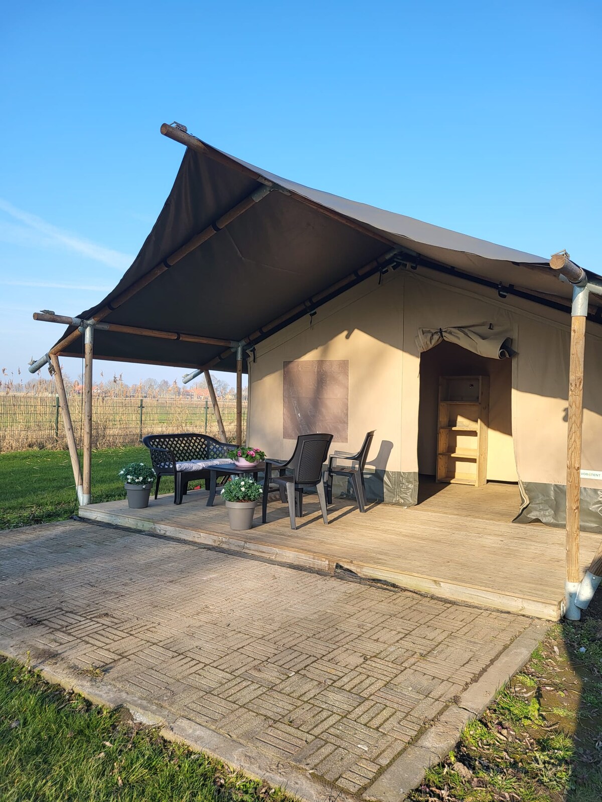 Ontsnap aan de dagelijkse sleur en boek nu onze luxueuze safaritent! De safaritent heeft 1 tweepersoonsbed, een stapelbed en een bedstee, een volledig uitgeruste keuken, een eethoek en een badkamer met regendouche. Een overdekt terras, met zicht op de polder. De tent is net geplaatst, er ligt nog geen mooi grasveld. Daarom bieden wij de tent aan voor een tarief van € 115 in plaats van € 125 per nacht. Mogelijkheid tot bijboeken van een HOTTUB!.