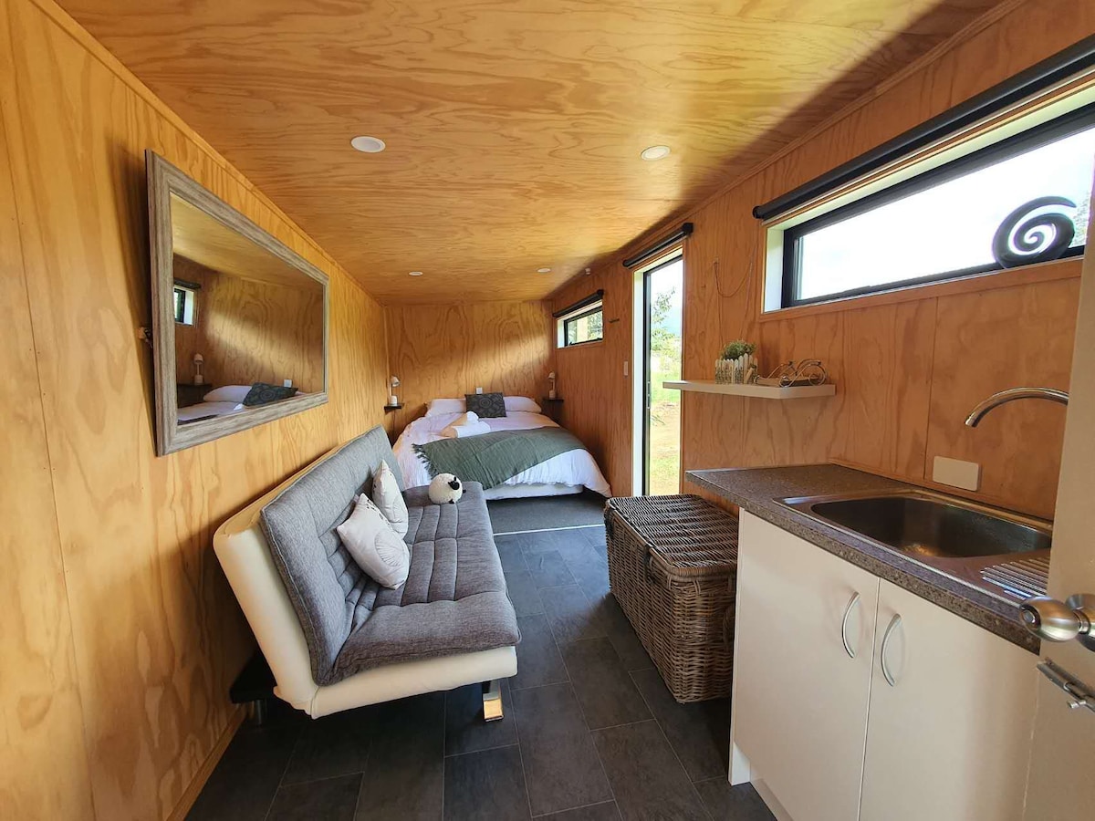 Bu özünə məxsus qurğu Yeni Plimut şəhərindən və kostyumlu gəzinti yolundan 10 dəqiqəlik məsafədə yerləşir. Burada ehtiyacınız olan bütün imkanlara malik isti rahat məkan var. Əsas evdən ayrıca girişi var və öz vanna otağı və balaca mətbəxi (mikrodalğalı soba, iki element, soyuducu, çaydan və toster ilə) ilə daha çox məxfiliyə imkan verir. Çoxlu pulsuz küçə parkinqi, eləcə də airbnb-nin yanında tək avtomobil dayanacağı var (yalnız kiçik avtomobillər üçün).