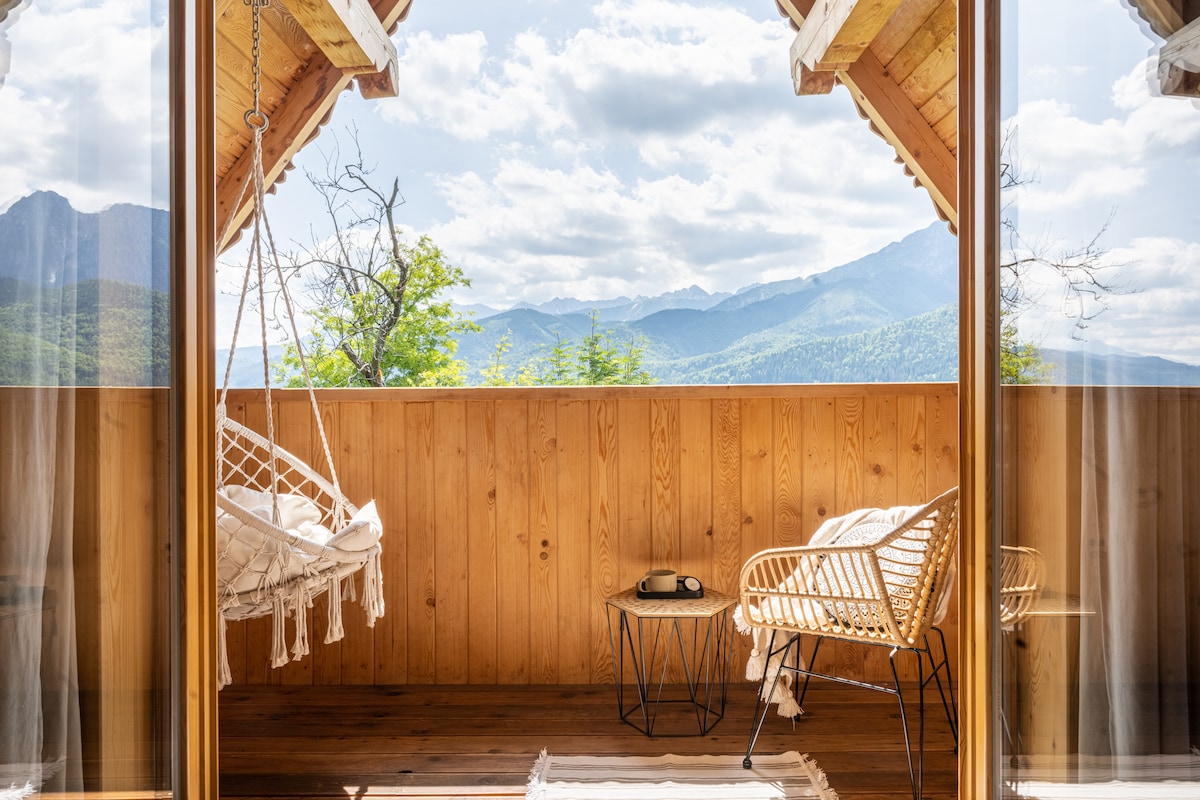 HONAY HOUSE is a cozy and modern cottage with a stunning and unique view of the High Tatra Mountains. Our house is perfectly crafted for everyone who is searching for wild nature, active recreation or just a refuge from the crowded resorts of Podhale. It`s a peaceful location. As a designers we took care of every detail to let you experience a high-quality interior that is extremely natural and warm. Outside the house you can also enjoy wooden chill deck. Welcome to stay on our hill.