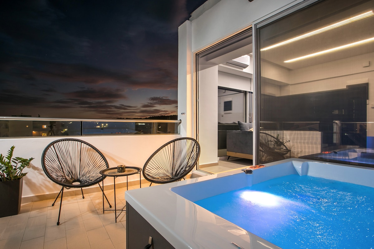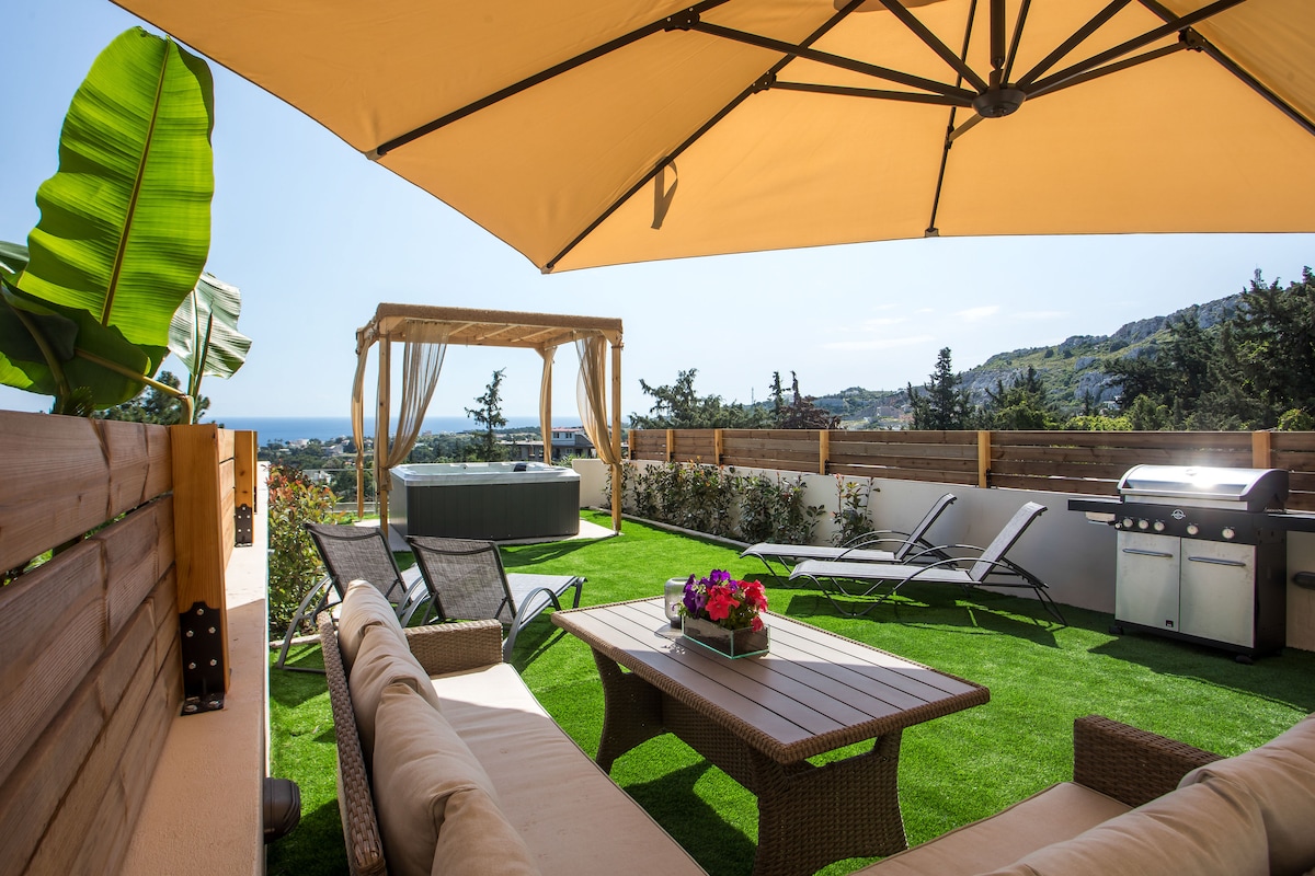 Sevasti Seaview Suite is a luxury, cozy and modern apartment in Koskinou of Rhodes, made to offer a unique and relaxed living to guests' holidays, providing a unique view of the sea and the city. It consists of high-quality materials, minimalist aesthetics, comfortable design and modern & peacefull decoration throughout the apartment. Inside Jacuzzi facilities with the ideal view of the sea makes it the perfect place to destress and rejuvenate while on vacation.