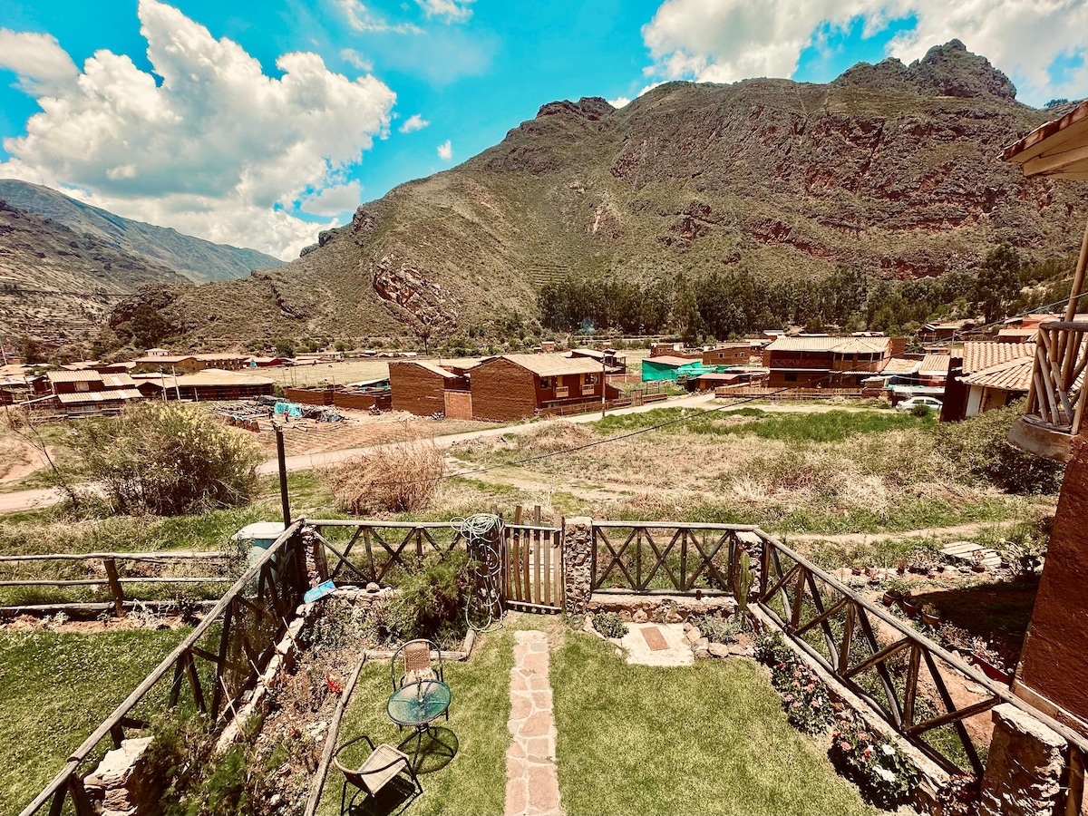 Casa típica en el. Valle Sagrado, te permite conectar con la naturaleza. Habitaciones alfombradas, buena iluminación Amplio patio, horno a leña, Jardín con espacios para relajarse, con arboles frutales y plantas de la región. ¡SI deseas escapar de la ciudad esta casa es ideal para ti, familiares y amigos. Capacidad máxima 8 huéspedes Los propietarios vistan la casa 1 ó 2 días a la semana para el mantenimiento del jardín. SÍ realiza la reserva, está no se comparte con otros huéspedes.