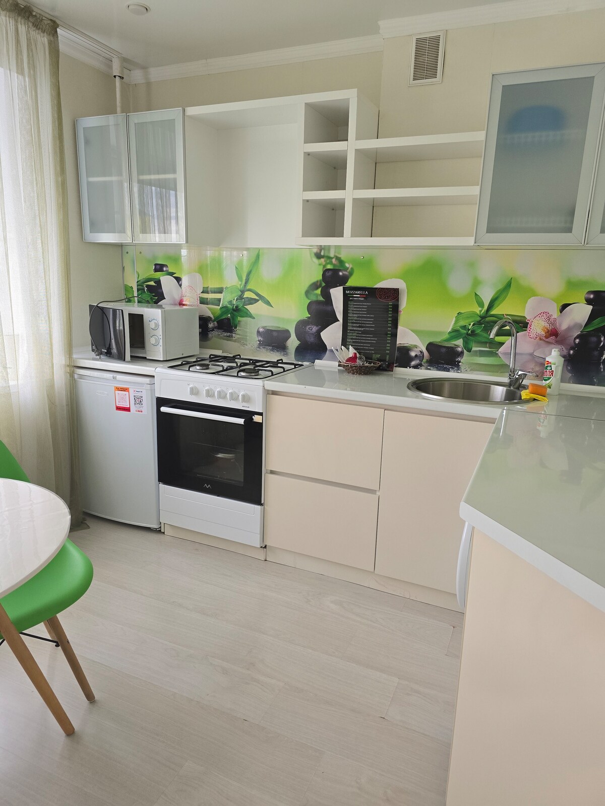 Mənzil şəhərin mərkəzi hissəsində, mərkəzi meydanın, mart ticarət mərkəzinin, tsum, bir çox bank və inzibati binaların yaxınlığında yerləşir. Həyətdə mükəmməl təmiz girişi və parkinqi olan təhlükəsiz və sakit ərazidə. Mənzil eybəcər dərəcədə təmizdir, əla təmir və yeni mebel ilə təchiz olunub. Hər qonaq üçün bütün gigiyena ləvazimatları var: şampun, duş geli, diş pastası, diş pastası, sabun və s. Çox rahatdır, həmişə yaxşı qoxu gəlir.