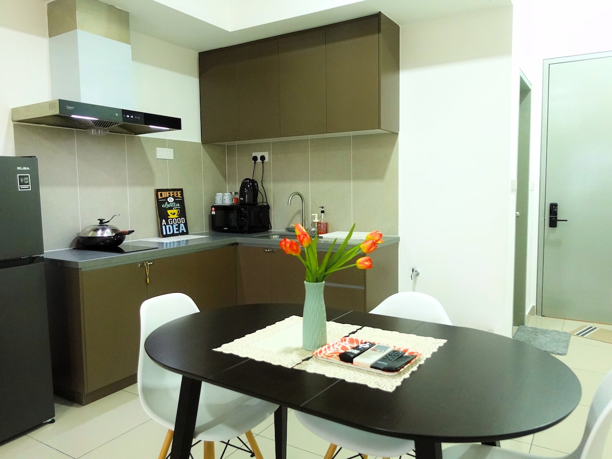 Həm qısa, həm də uzunmüddətli qonaqlamalar üçün mükəmməl olan müasir xidmət mənzilimizdə komfort və rahatlığı təcrübədən keçirin. Süitamız təklif edir: Geniş Yaşayış Məkanı: Çoxlu təbii işığı olan, rahat, yaxşı təchiz olunmuş məkanda dincəlin. Tam təchiz olunmuş mətbəx: Müasir mətbəx ləvazimatlarımızla sevimli yeməklərinizi hazırlayın. Yüksək sürətli Wi-Fi: Sürətli və etibarlı internetlə əlaqədə qalın. Baş Mövqe: Şah Alamın mərkəzində yerləşir, yerli turistik yerlərə və ticarət mərkəzlərinə asanlıqla giriş imkanı var.