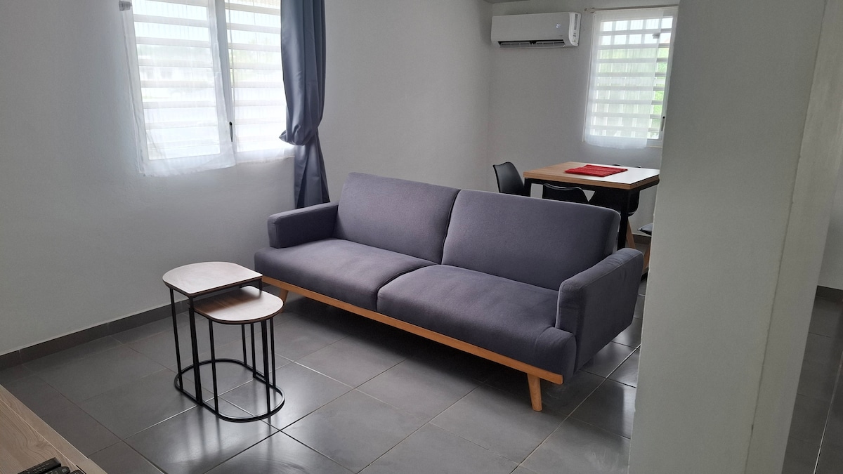 T2 40 M2 tam təchiz olunub, xüsusi və təhlükəsiz yaşayış yerində yerləşir. Wi-Fi / KANAL+ / NETFLIX internetə giriş, 20M2 ayrıca terras üstü, döşəkağı-dəsmal təmin edilir, təmizlik xidməti. Pilləsiz terras, hovuz və Bar/Barbekü/Pizza sobası sahəsi yaşayış yerinin giriş imkanınız olan ümumi sahələridir. Uzunmüddətli qonaqlamalar üçün razılaşdırılmış qiymətlər. Terrasın təmiri planlaşdırılır, taxta tropik atmosferdə çox işləyir...