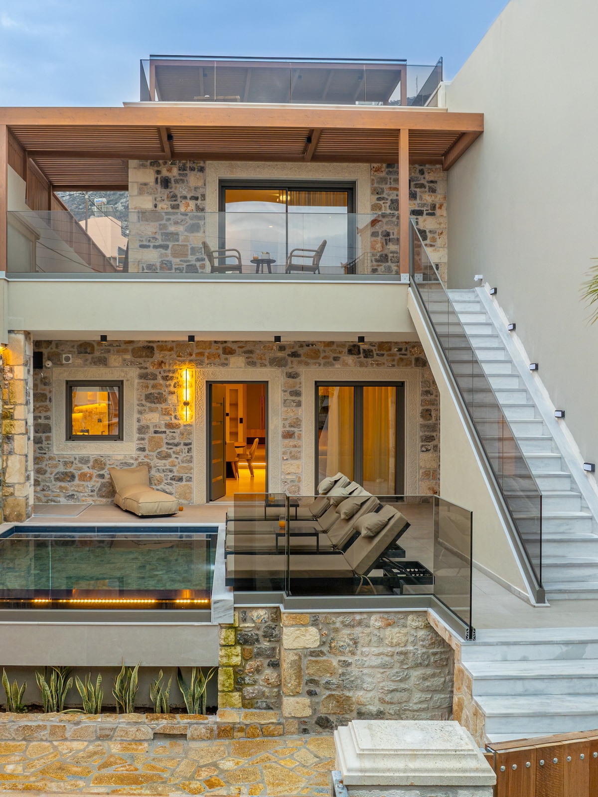 Manuelo Relaxing Villa is a charming stone built villa located in the heart of Old Hersonissos, harmoniously combining traditional Cretan architecture with modern comforts. Surrounded by authentic village scenery, it is an ideal choice for both summer holidays and cozy winter escapes. The villa features a private outdoor jacuzzi and a fireplace, offering year round relaxation, comfortable living spaces, privacy, and an authentic Cretan hospitality experience.