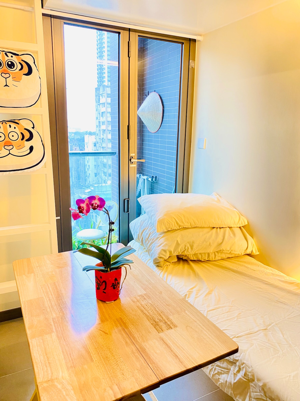 Bu unikal məkanın öz üslubu var. Çox gözəl dəniz mənzərəsi, Rəqəmsal Nomad üçün çox uyğundur. Bu, studiya mənzilidir (açıq üslubda, yataq otağı yoxdur) Maks. 2 böyük. Honq Konqun Şərqi Kovloon şəhərində yerləşir. Metroya (Nqau Tau Kok stansiyası) yaxın, cəmi 8 dəqiqəlik məsafədə. Avtobus dayanacaqlarından cəmi 2 dəqiqəlik məsafədədir və bütün rayonlara müxtəlif avtobus xətləri (hava limanı avtobusları daxil olmaqla) var ki, bu da çox rahatdır. ** qeydlər: Çeşidli başlıq olmadığı üçün yemək bişirmək olmur