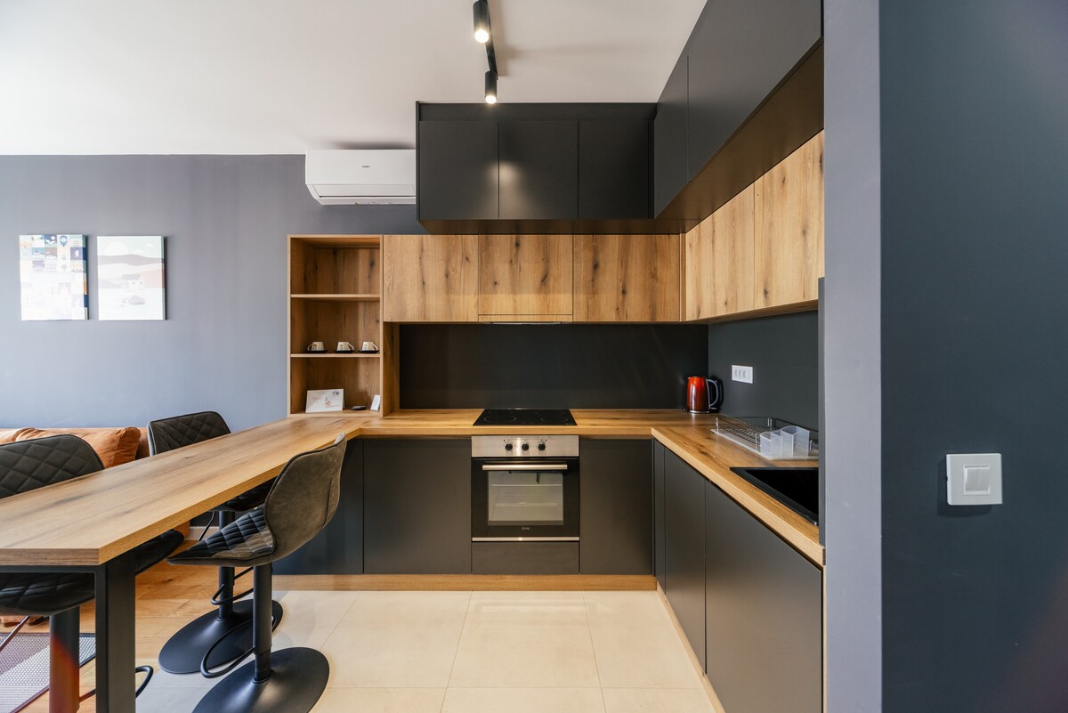 Stay in a luxury cozy apartment in the heart of Prishtina (Lakrishte), one of the city’s most sought-after locations. Walk to everything: top cafes, restaurants, and nightlife. This modern space offers a bright bedroom, fully equipped kitchen, elegant bathroom, Smart TV, fast WiFi, and a private balcony with city views. Perfect for couples and stylish city stays.