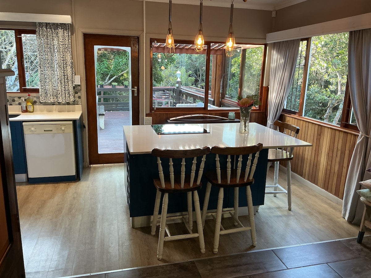 Mağaza və restoranlardan piyada məsafədə yerləşən Knysna şəhərində tam təchiz olunmuş, şəxsi iaşə kabinəsi. Gözəl böyük Spa vannası və laqunun gözəl mənzərəsi. Yaxşı təchiz olunmuş mətbəx və əla qəhvə stansiyası. GÜNƏŞ EHTİYATIMIZLA DAHA ÇOX YÜK TÖKÜLMÜR!! Tam DStv, Netflix, sürətli Lifli İnternet, qaz və taxta qril və kiçik od çuxuru. Tamamilə məxfidir - buranı romantik tətil üçün mükəmməl bir məkana çevirmək. Bağça sahəsini paylaşacağımız Ceyk adlı boksor cins itimiz var!! Təəssüf ki, heç bir uşaq və körpəyə icazə verilmir.