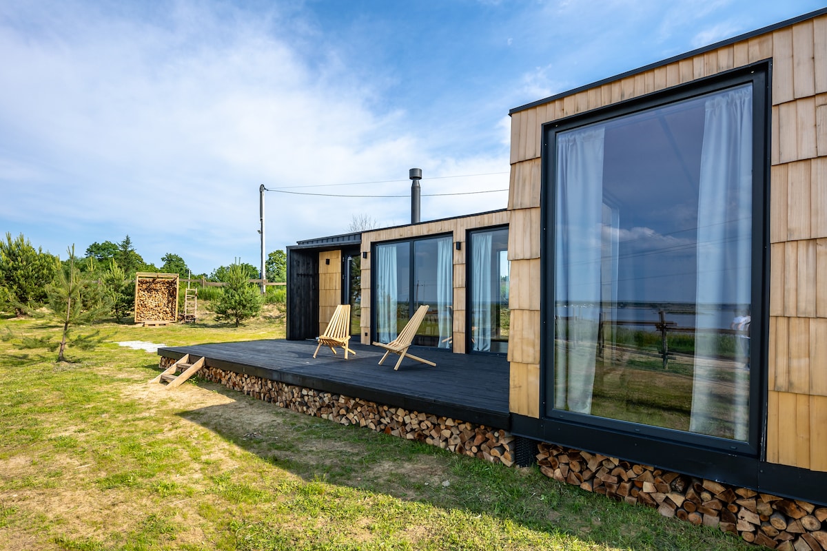 Təbiətlə birlik meşənin yanındakı qandalda ən yaxşı hiss olunur. Ətrafda çömçəquyruqlar, uçan onlarla quş, dələ ilə tullanma, çiçək açan mavi kollar və böyürtkən var. Evin içində keyfiyyətli tətil üçün lazım olan hər şey var: panoramik pəncərələr, çətənə yastıqları və yorğanı olan böyük çarpayı, odun sobası olan soba, rahat mətbəx sahəsi, gün batımının fantastik mənzərəsi olan yağış duşu. Rahatlaşdırıcı sahəsi, yanğın qabı və fincanı (vat) olan terras da istənilən vaxt xidmətinizdədir.